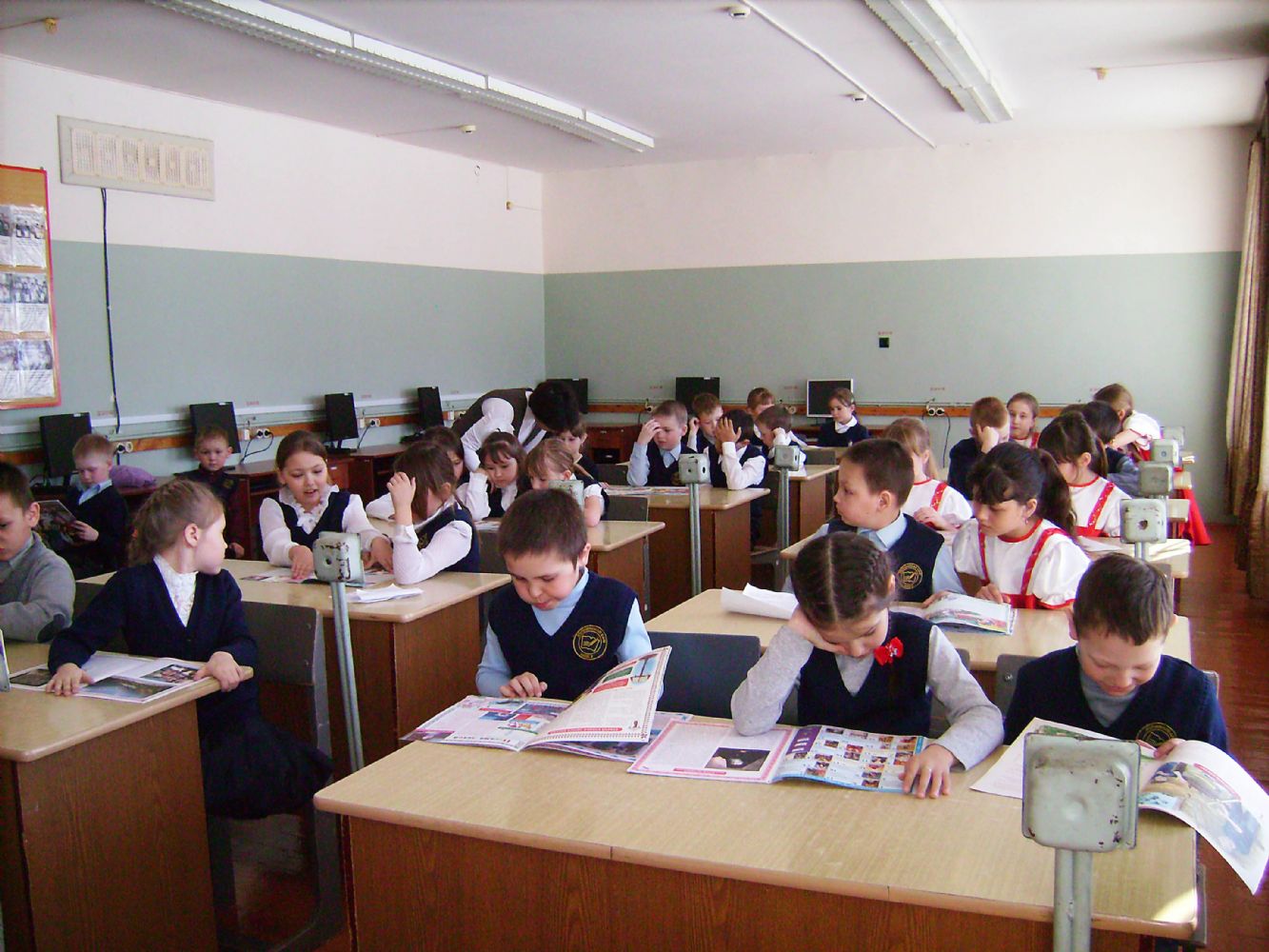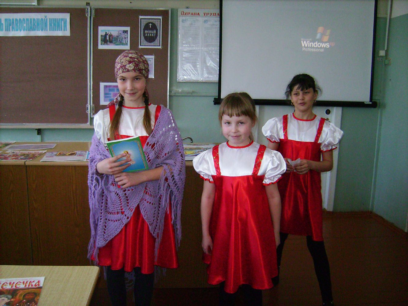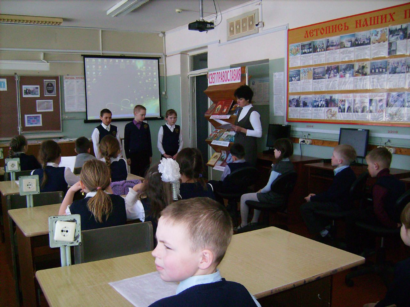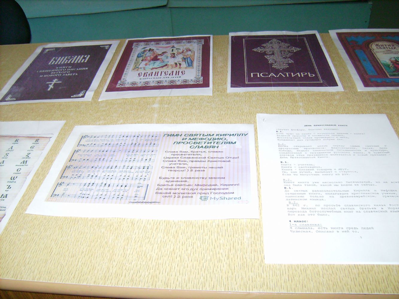 Ребята узнали, как и когда святые братья Кирилл и Мефодий создали славянскую азбуку и появилась возможность перевести книги с древнееврейского, греческого и латинского языков. В первую очередь, переводились богослужебные книги. Девочки и мальчики 3 класса активно принимали участие в празднике – нарядно одетые, они сами представляли такие важные книги, как Библия, Евангелие, Псалтирь, Молитвослов и Жития святых. Учащиеся 4 класса под руководством Светланы Николаевны Федоровой подготовили и показали сценку. Затем школьники прослушали гимн Кириллу и Мефодию, а также песню «Сердцу полезное слово». В завершение рассказали и показали презентацию детского православного журнала «Свечечка».