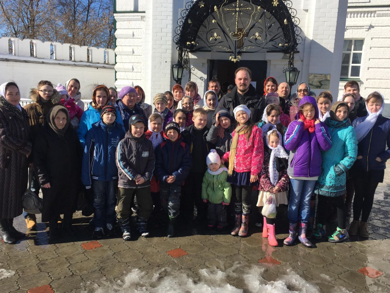 После воскресной службы паломники отправились в путь на двух микроавтобусах. Дети с радостью ожидали встречу с Раифским монастырем. День был по-весеннему солнечным и теплым. Сначала побывали на святом источнике и набрали святой воды, а на входе сверили свои часы по солнечным часам.