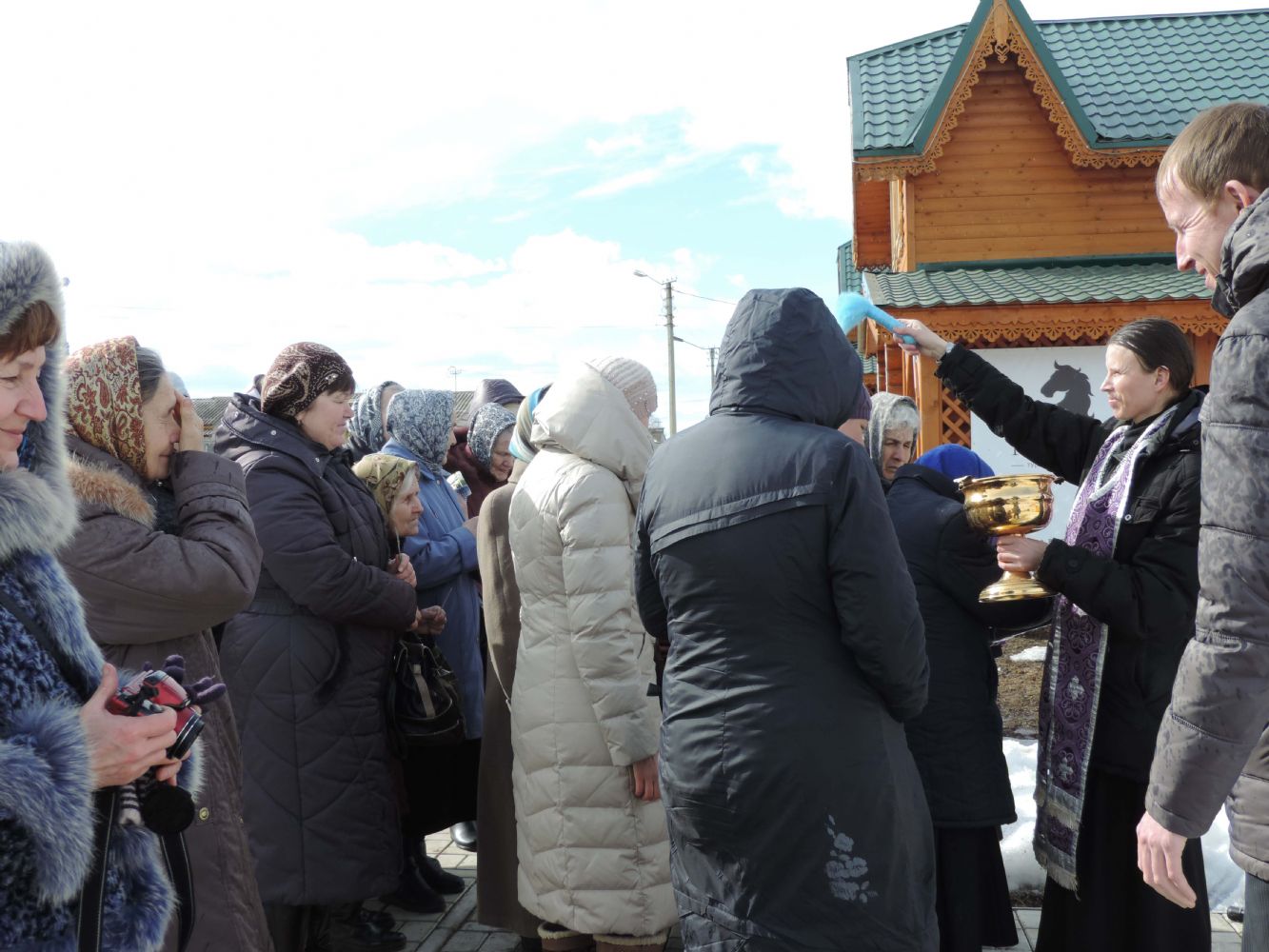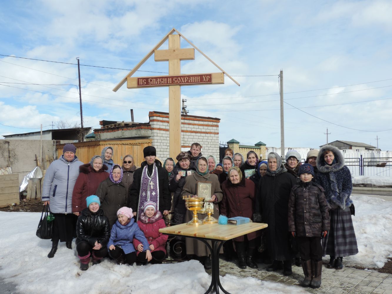 После освящения креста отец Василий обратился к присутствующими с проповедью. Рассказал о том, что у каждого из нас есть свой крест, который должны нести на протяжении всей своей жизни. Господь дает каждому крест по его силам, и когда нам кажется, что нет уже сил его нести, когда нас настигает отчаяние, в такие минуты надо помнить о том, как тяжело было Самому Господу Иисусу Христу, пострадавшему за все человечество, но Он имел огромное терпение. Также и мы, православные христиане, должны учиться терпению, должны помнить о том, что все испытания даны нам Богом для нашей же пользы, для нашего спасения.