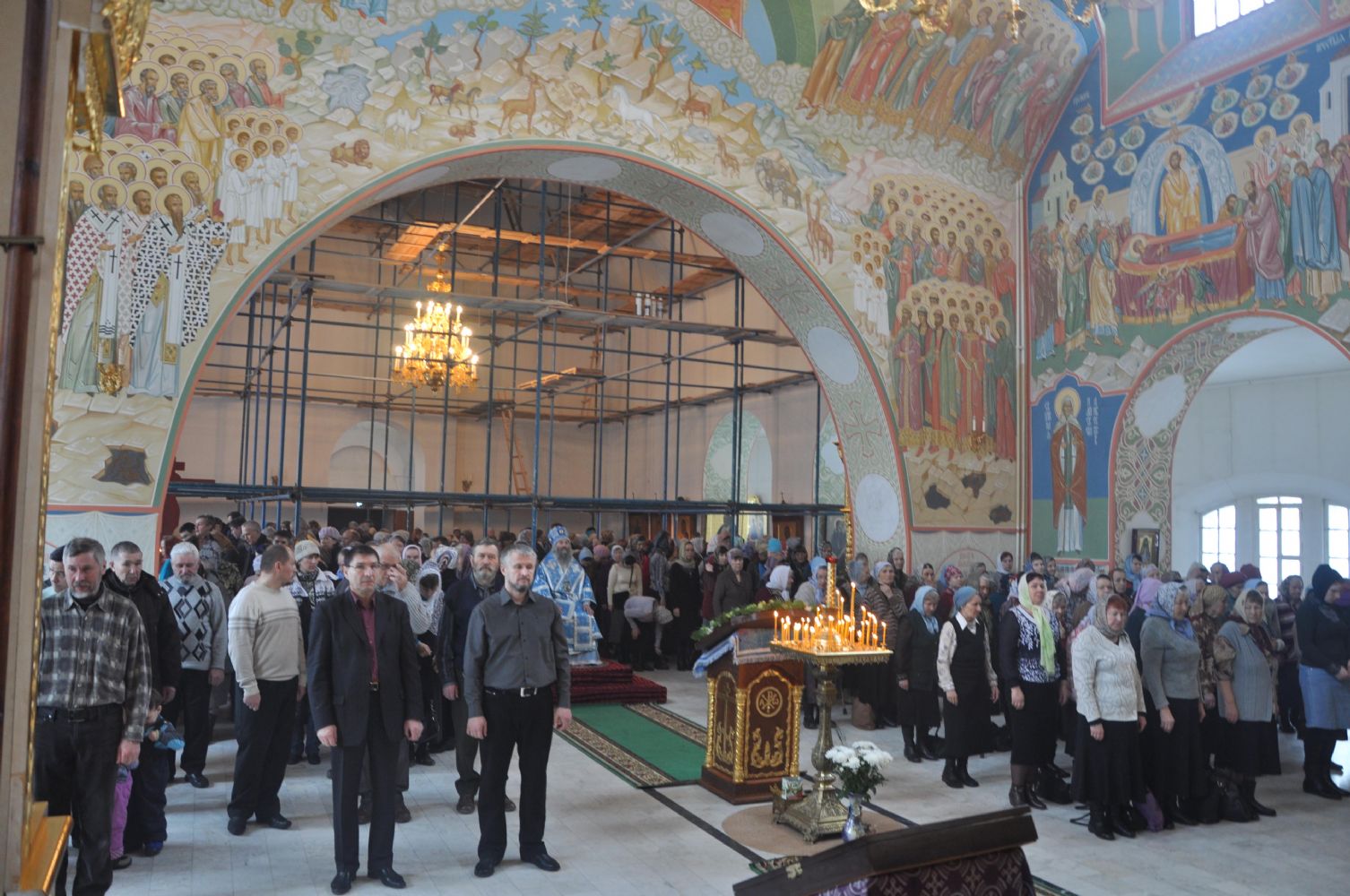 Правящему архиерею сослужили: благочинный Йошкар-Олинского церковного округа, настоятель собора, митрофорный протоиерей Евгений Кутырев и иерей Александр Лоскутов.