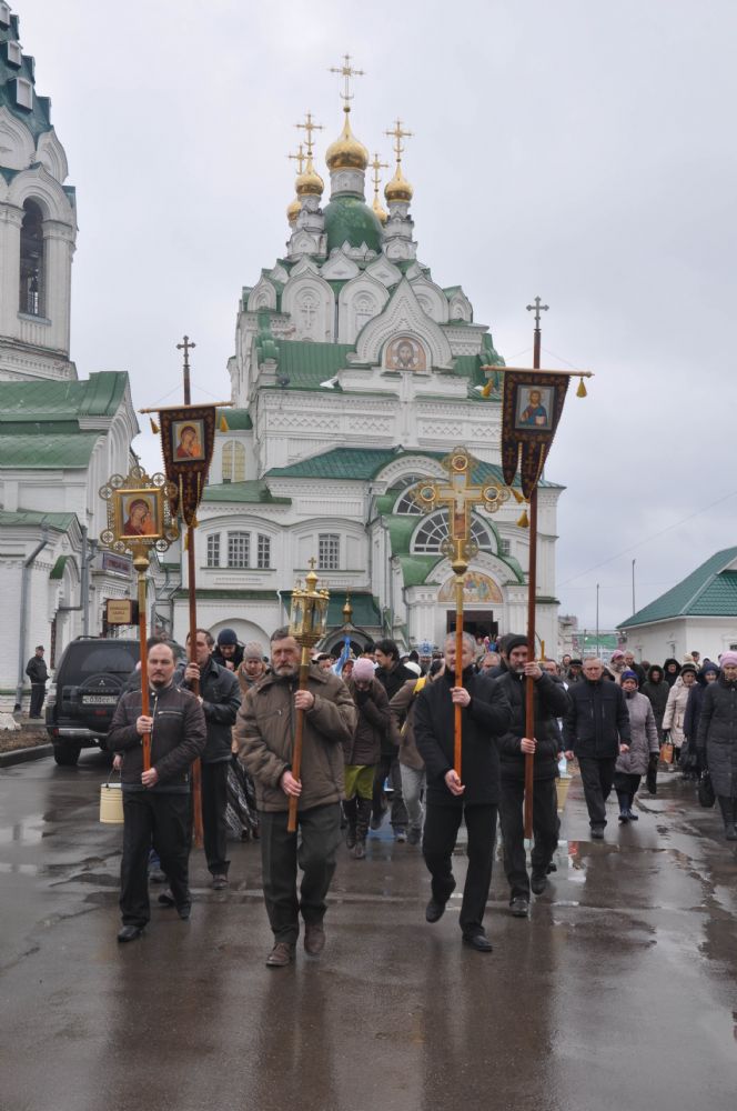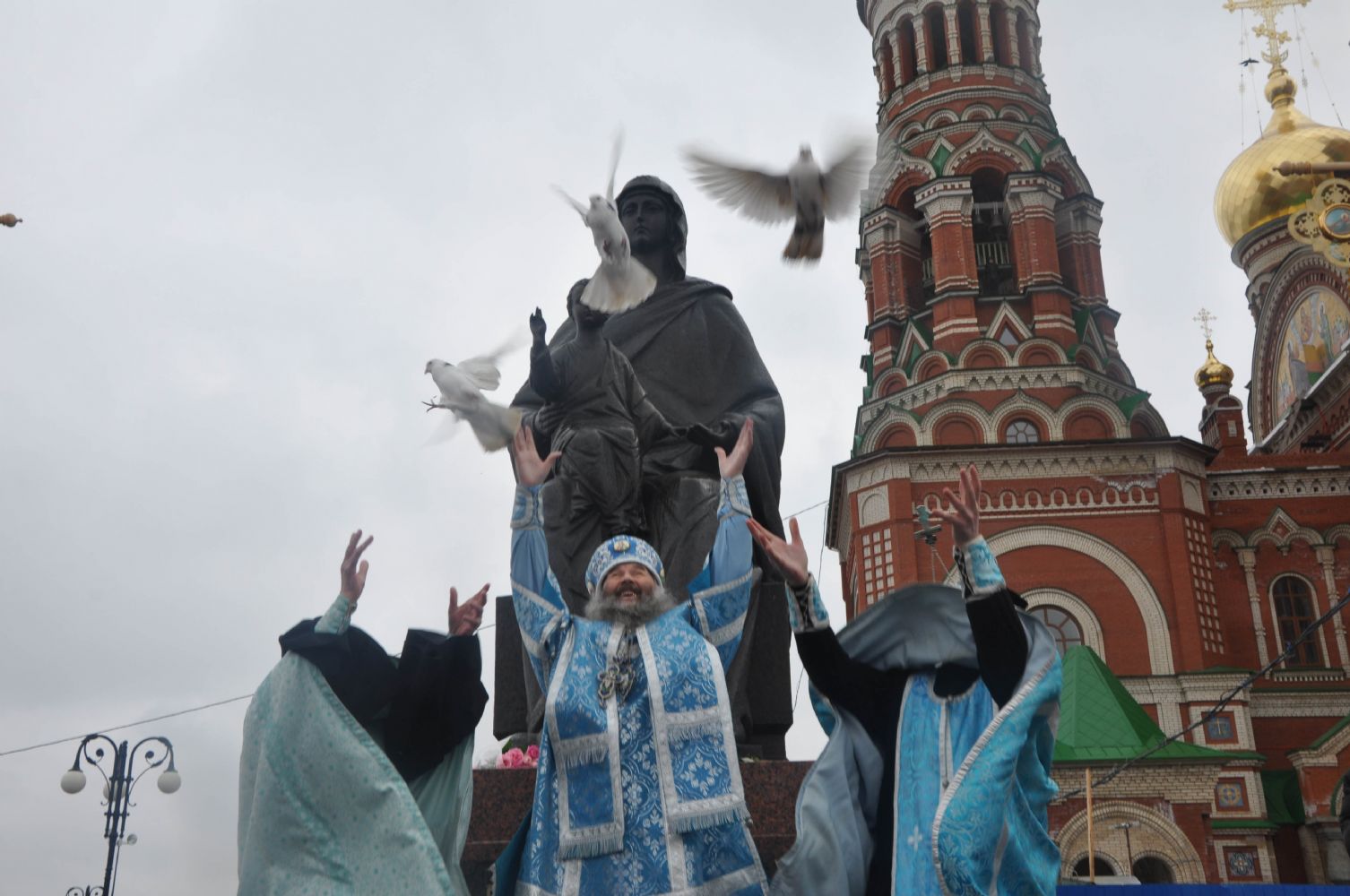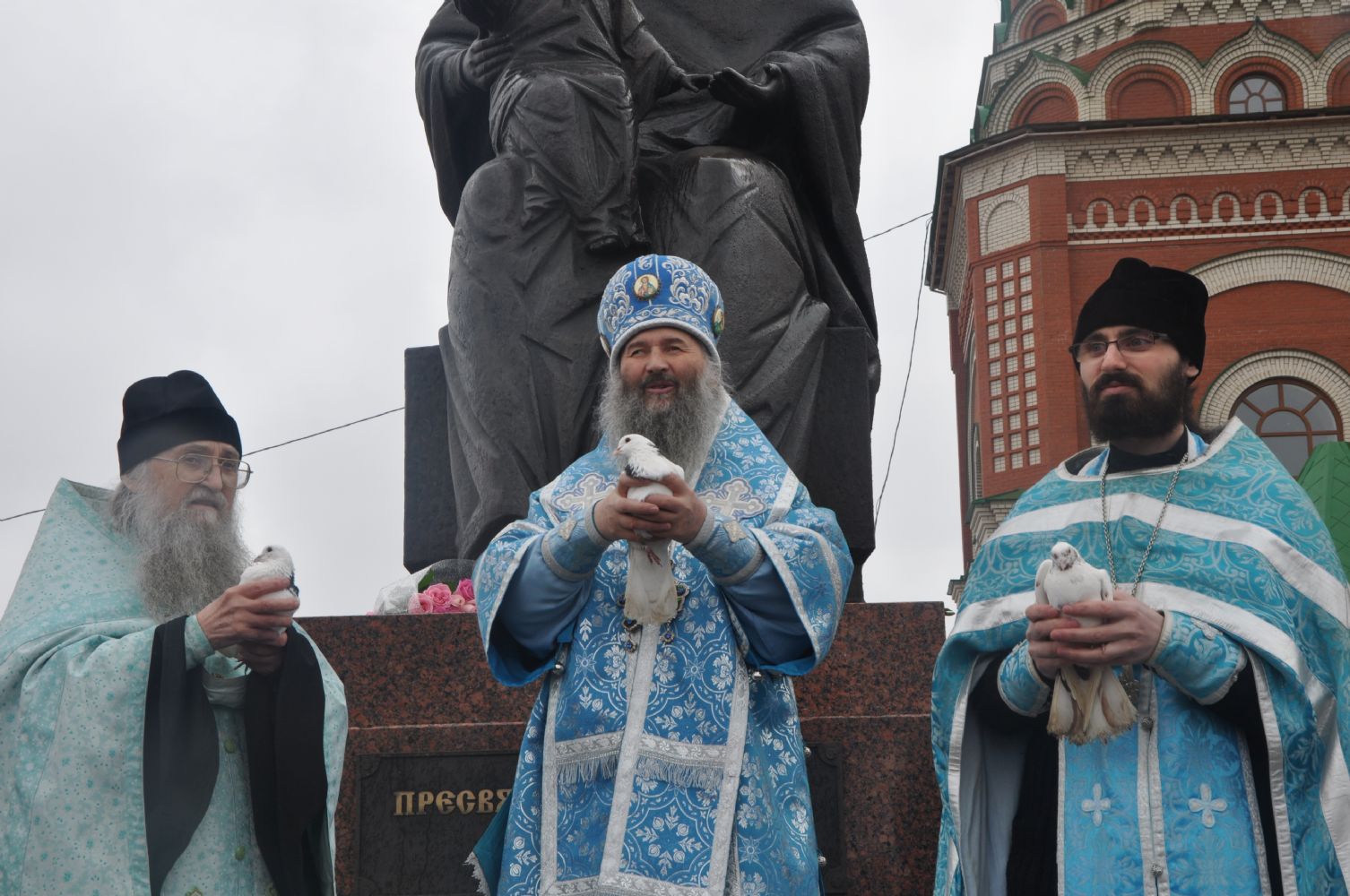 По окончании Божественной литургии состоялся молебен и крестный ход к строящемуся Благовещенскому собору. По традиции в праздник Благовещения, Владыка и сослужившие клирики выпустили в небо белых голубей. В заключении Владыка обратился к пастве с проповедью.