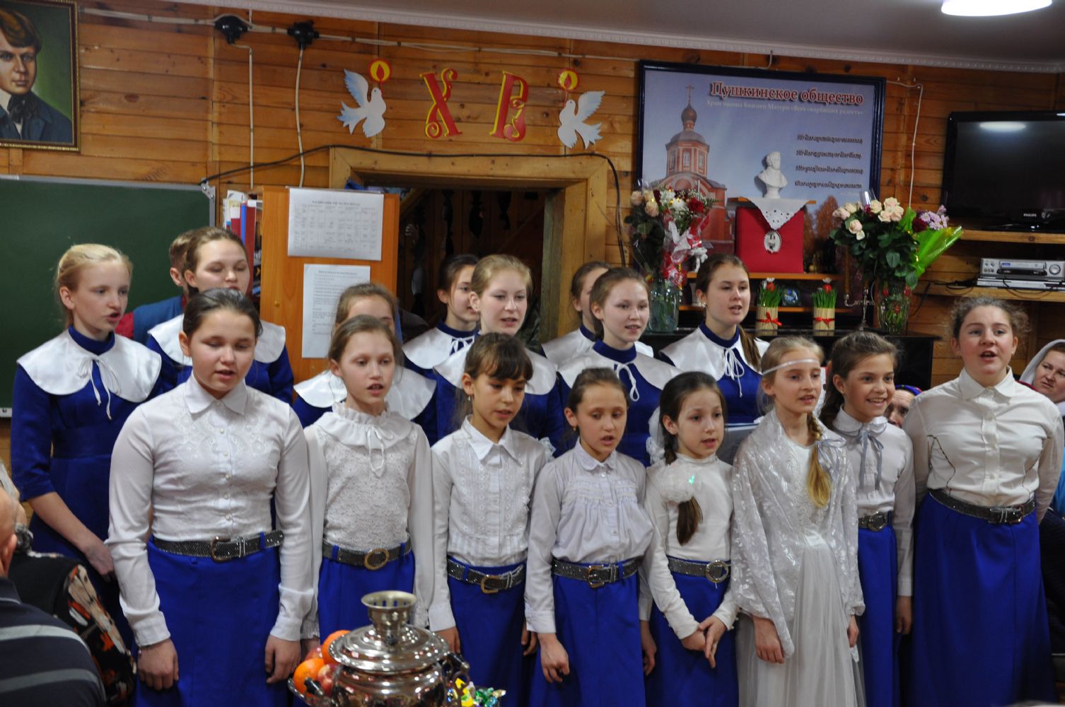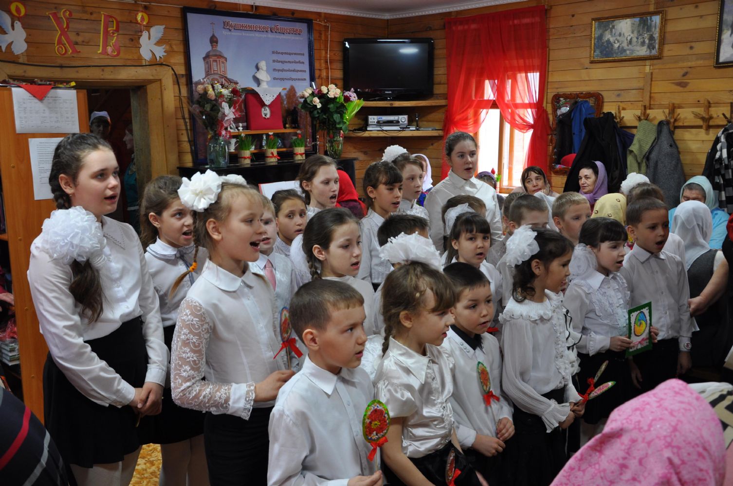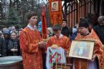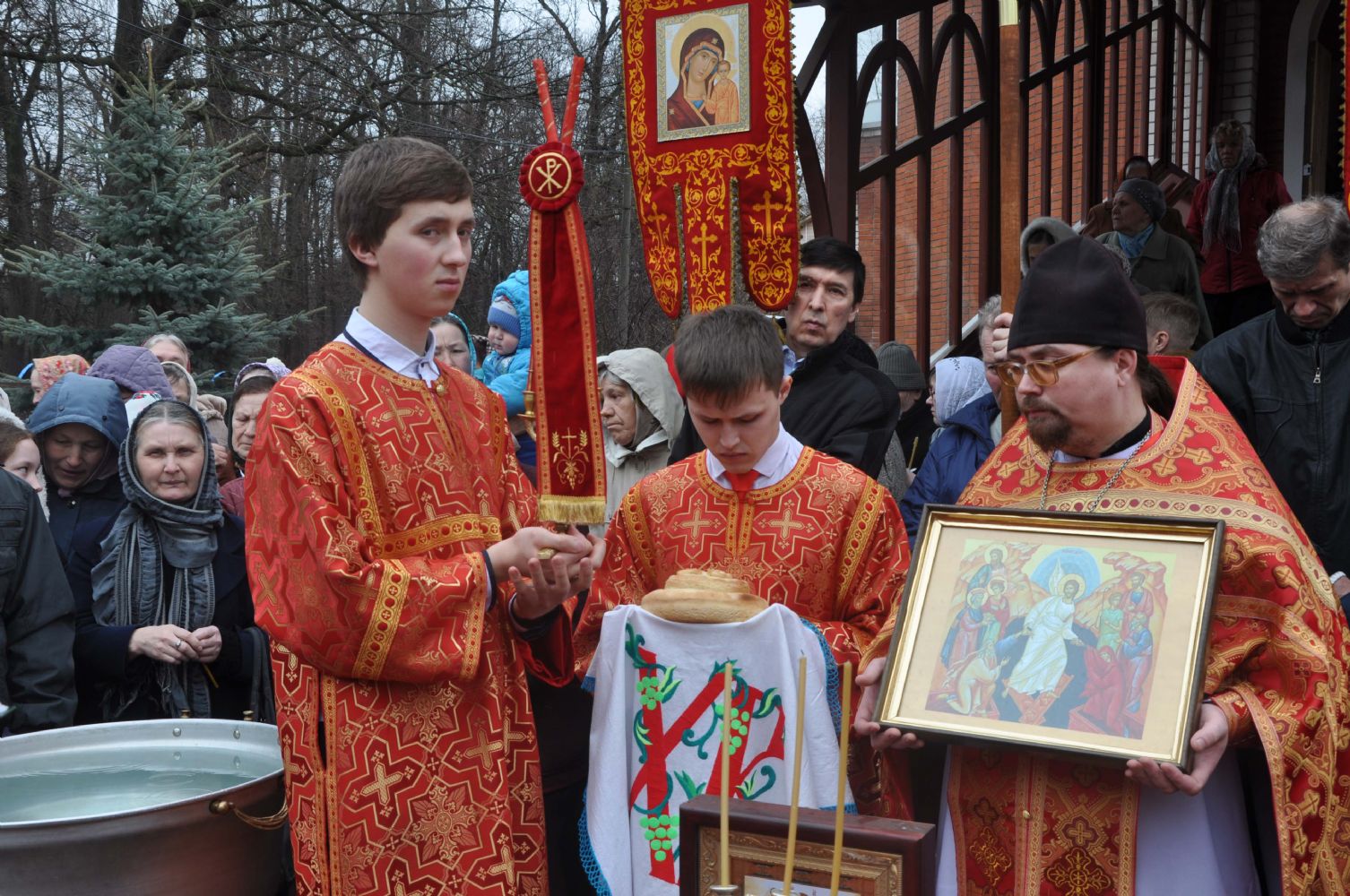 По окончании литургии Владыка совершил водосвятный молебен, после которого состоялся пасхальный крестный ход вокруг храма. После богослужения воспитанники Воскресной школы выступили перед владыкой с песнопениями прославляющими Воскресшего Христа.