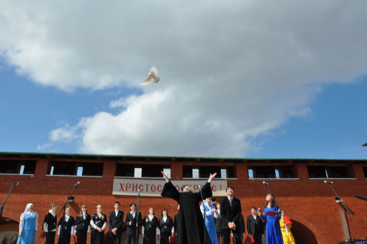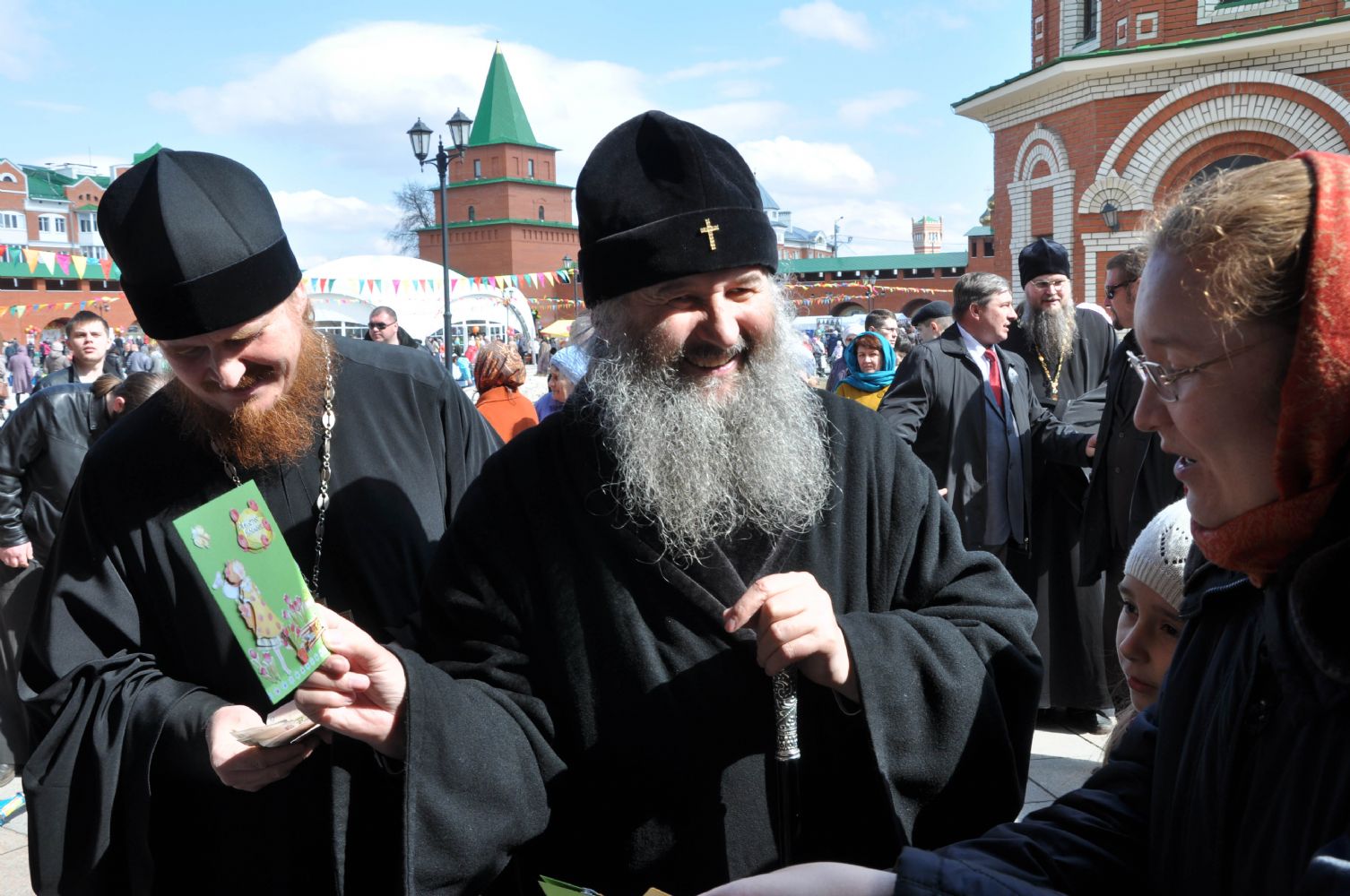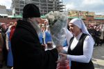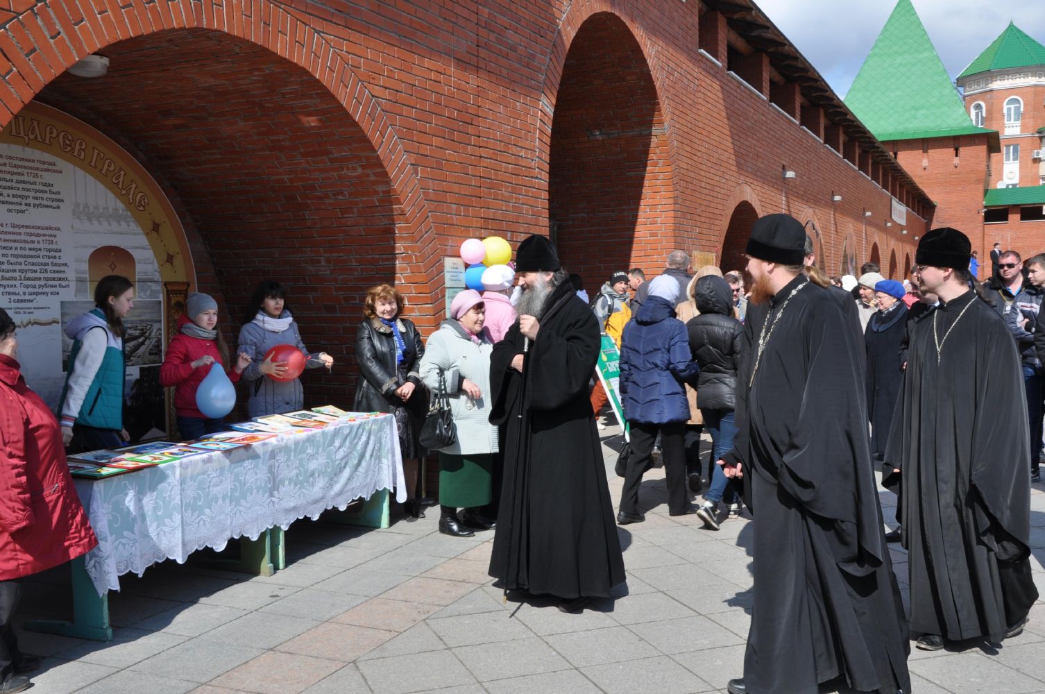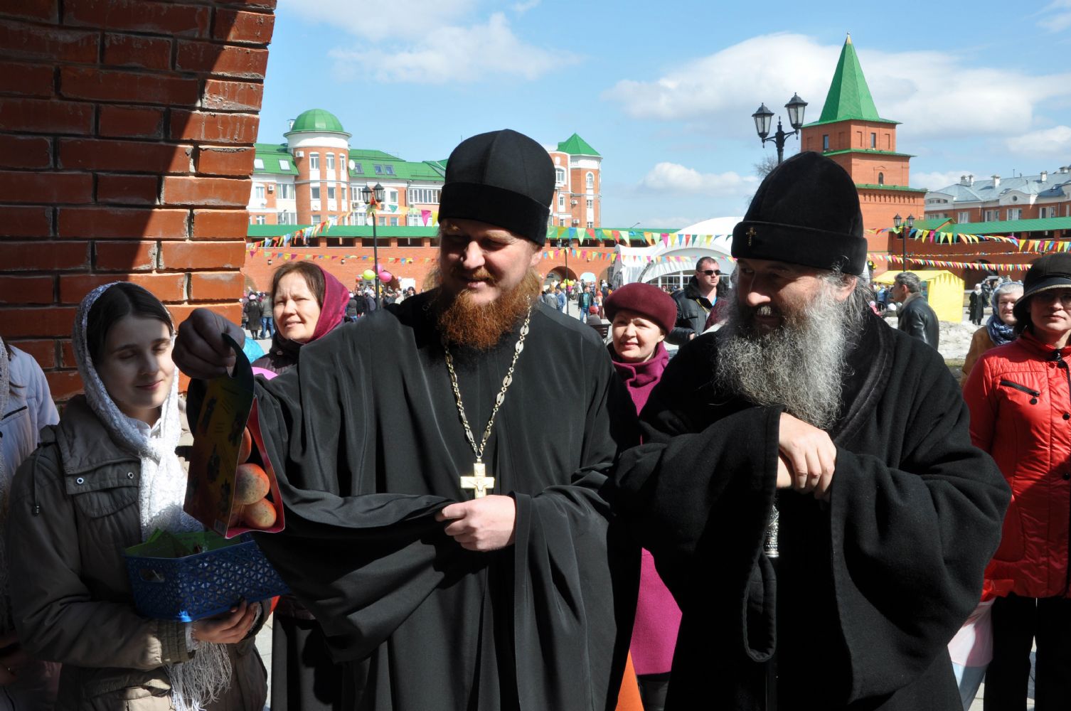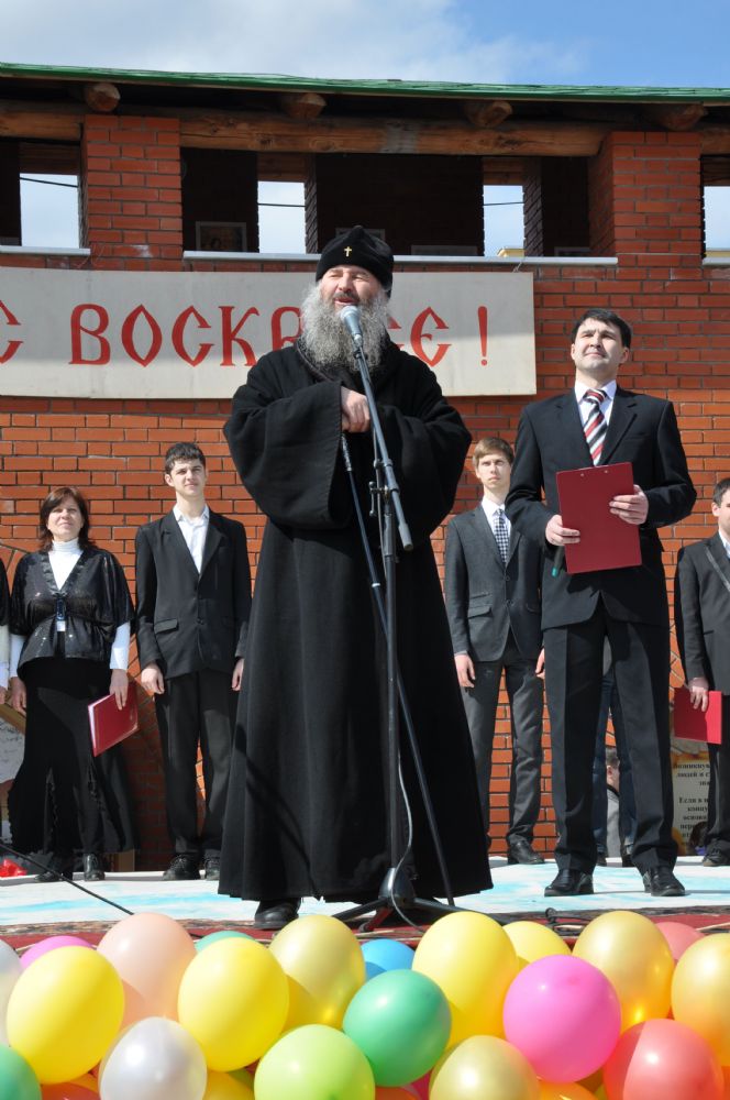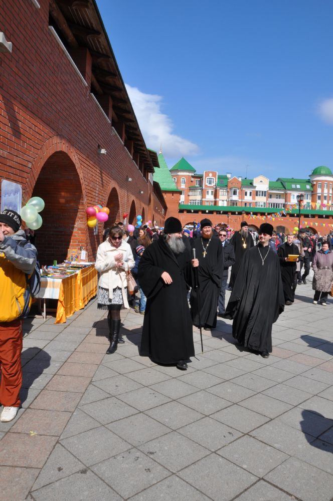 Постепенно ярмарка оживала, погода, по-весеннему теплая, словно приглашала горожан на Пасхальный праздник. Ближе к полудню состоялось официальное открытие ярмарки. К жителям и гостям столицы с архипастырским словом обратился архиепископ Йошкар-Олинский и Марийский Иоанн. Он поздравил всех присутствующих с праздником Светлого Христова Воскресения и по традиции выпустил в небо голубей. Так же с приветственным словом к собравшимся обратился заместитель министра культуры РМЭ А.Н. Луничкин.