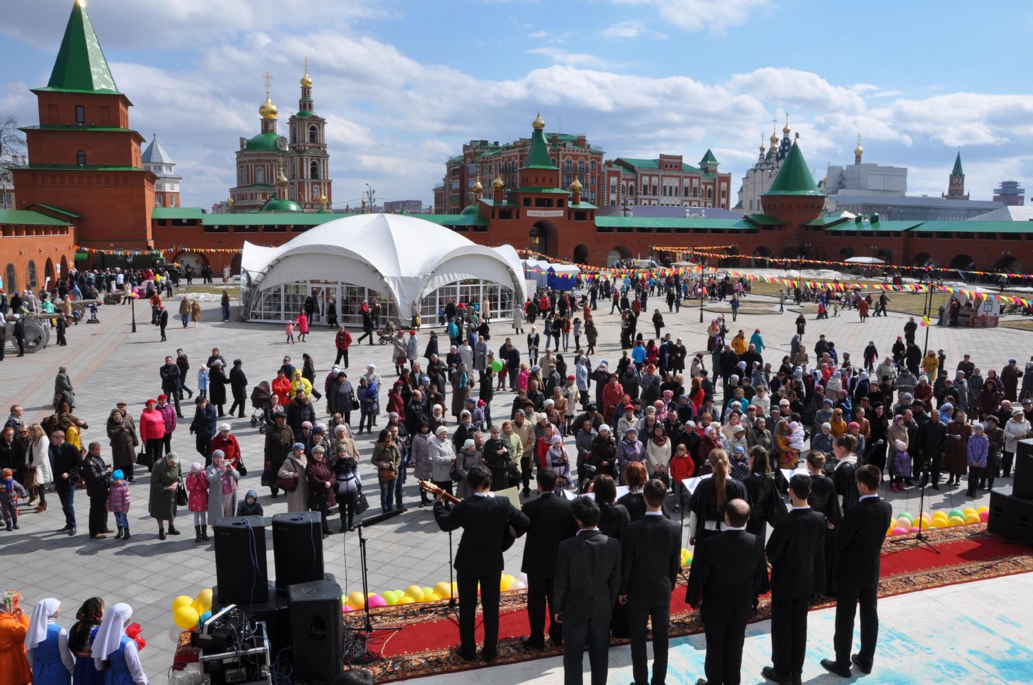 Концертная программа, во время которой прозвучала духовная и русская народная музыка и романсы в исполнении ведущих артистов РМЭ и хоров длилась на протяжении всего праздника. На сцене выступили: хор Троицкого храма и детский хор «Благовест», народные артисты РМЭ Александр Швед, Михаил Мосунов, Зоя Бердникова, Ирина Ефремова, ансамбль «Светла горница», заслуженный работник культуры РМЭ Наталия Ковалевская, ансамбль народного танца «Задоринка», ансамбли народной песни «Калинушка» и «Эреҥер», фольклорное объединение «Царев город», лауреат Государственной молодежной премии имени О. Ипая Влад Николаев, лауреат Международных и Всероссийских конкурсов эстрадной песни Евгений Яндукин. На праздник приехали так же дальние гости — хор «Светоч» Мари-Турекского прихода.