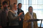 По окончании Литургии архиепископ Иоанн всех поздравил с престольным праздником и подарил собравшимся иконки великомученика Георгия Победоносца и открытки в честь 70-летия победы в Великой Отечественной войне.