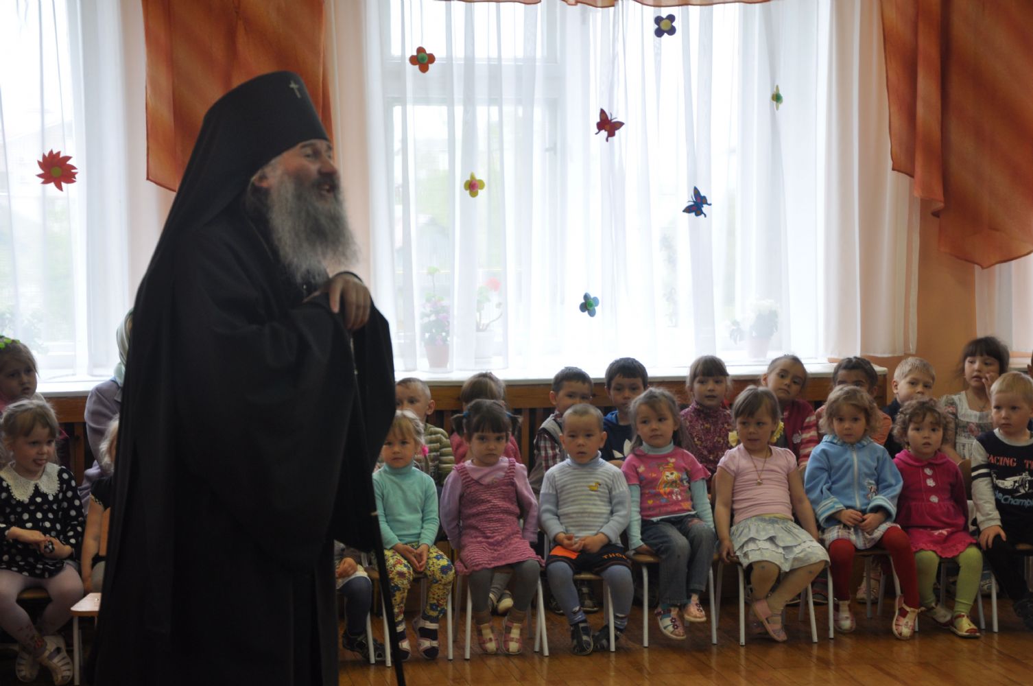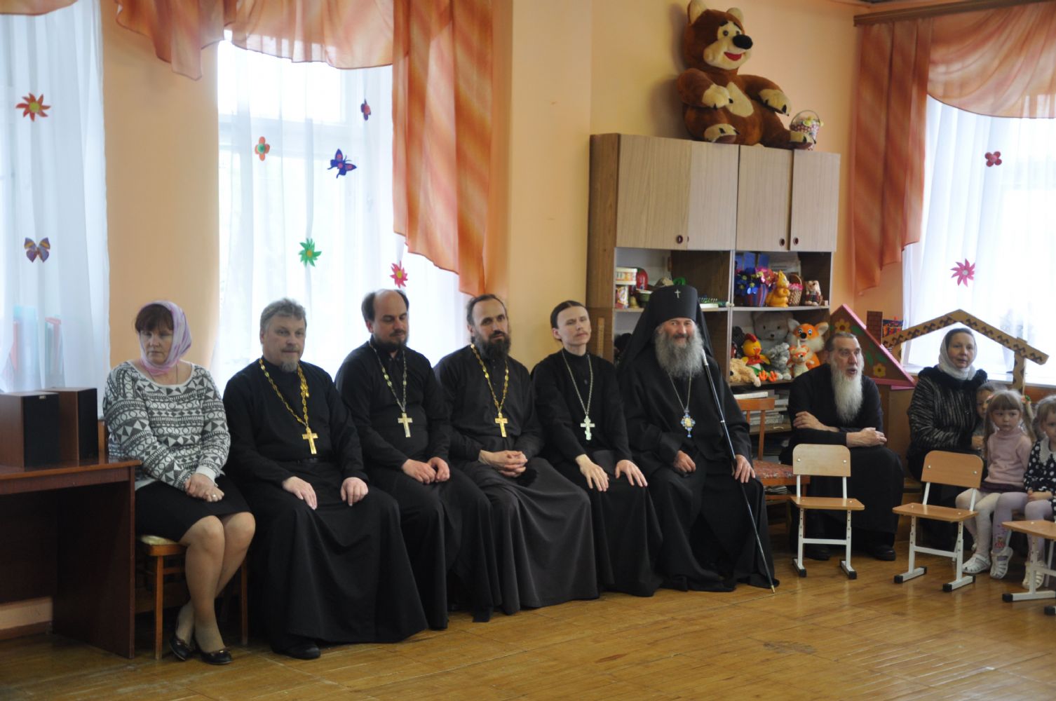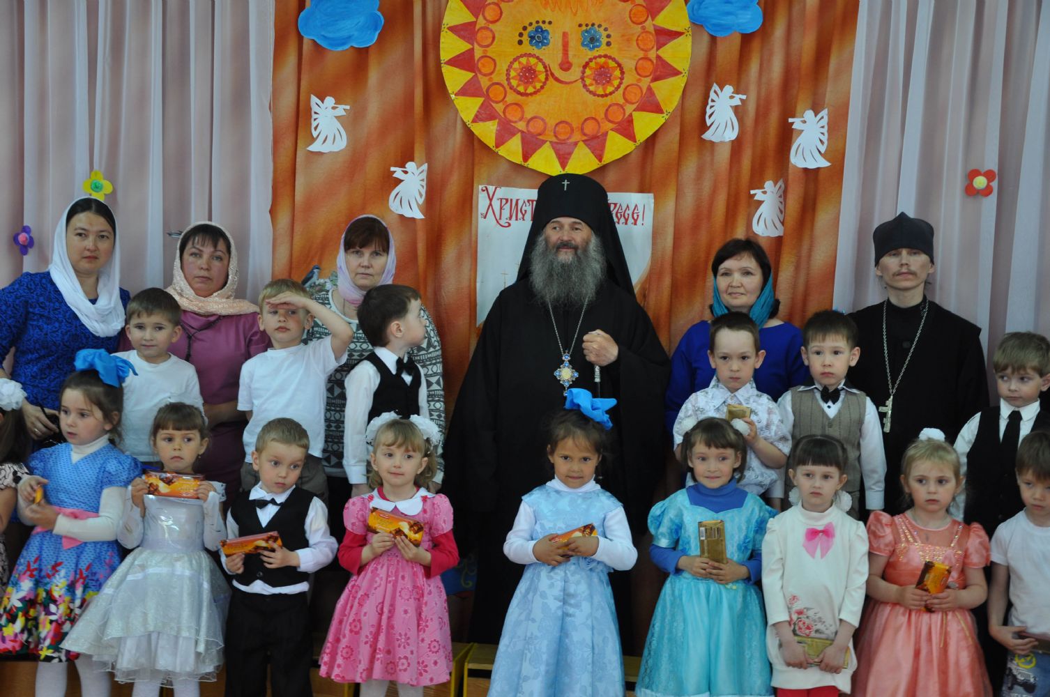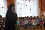 По окончании богослужения Владыка с духовенством посетили Кузнецовский детский сад «Улыбка», в котором дети выступили перед гостями с пасхальными номерами. В заключение встречи, Владыка обратился к детям с назидательным словом и раздал всем сладкие подарки.