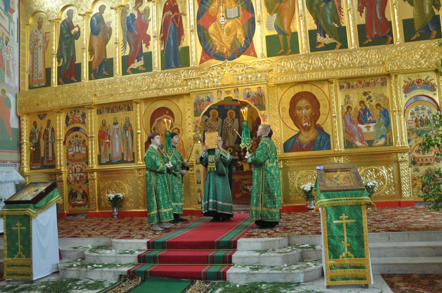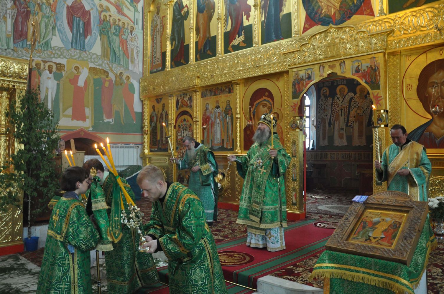 Вечером того же дня Владыка Иоанн возглавил торжественное Всенощное бдение в Троицком храме г. Йошкар- Олы. Его Высокопреосвященству сослужили благочинный Йошкар-Олинского церковного округа, настоятель Вознесенского кафедрального собора митрофорный протоиерей Евгений Кутырев, клирики Вознесенского кафедрального собора священники Андрей Норкин и Олег Большаков.