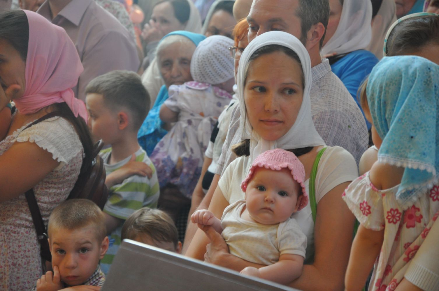 За богослужением с Архипастырем молились многочисленные верующие, в том числе и гости из Нижнего Новгорода прибывшие на престольные торжества.