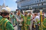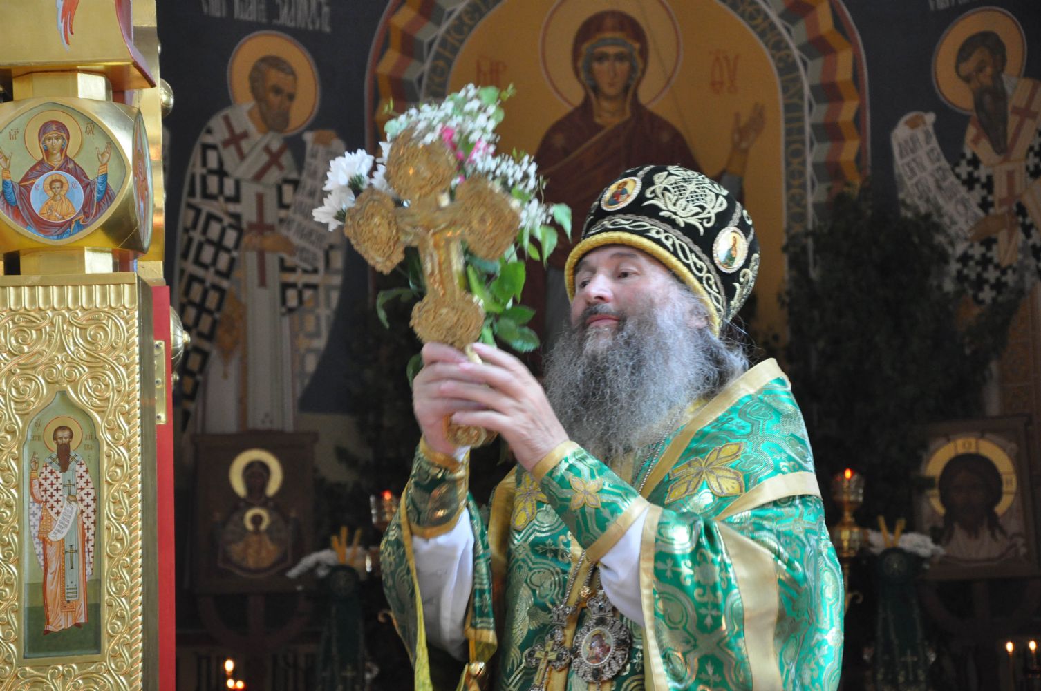 По окончании Литургии Его Высокопреосвященство совершил Великую вечерню праздника Пятидесятницы с чтением коленопреклонных молитв. В заключение Богослужения был совершен крестный ход вокруг храма.