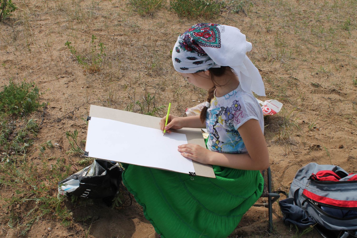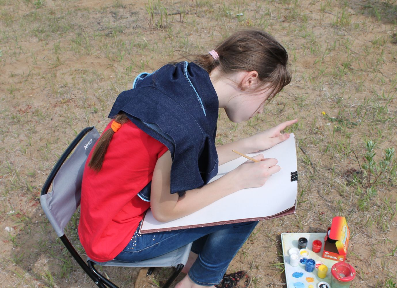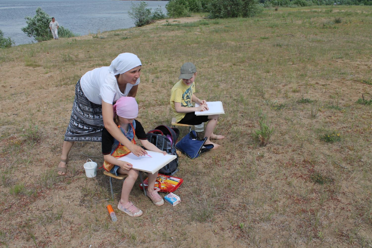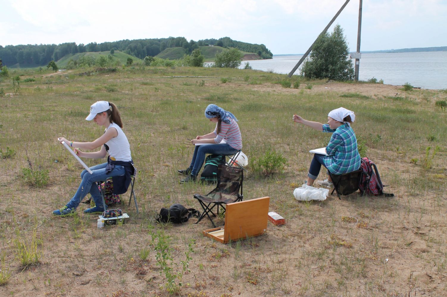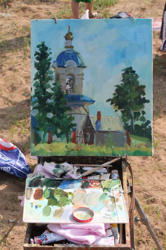 Затем юные паломники отправились на святой источник Пресвятой Богородицы. После купания детей угостили обедом в церковной трапезной. Хорошо подкрепившись с дороги, будущие художники взялись за творческое дело. Расположившись на берегу реки, они приступили к написанию этюдов с натуры.