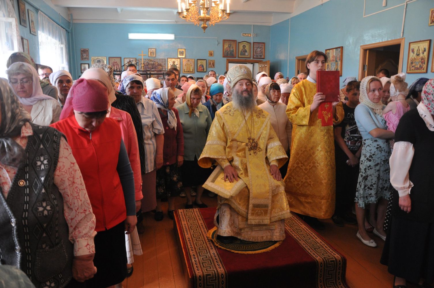 По окончании литургии был совершен молебен и Крестный ход вокруг храма, после чего Владыка обратился к собравшимся с проповедью и поздравил всех с престольным праздником.