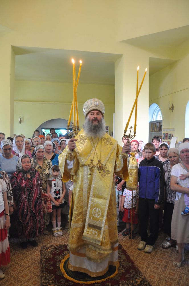 В храме он совершил Божественную литургию. Сослужили ему настоятель храма протоиерей Николай Полежайкин и духовник Восточного благочиния настоятель Свято-Троицкого храма с. Мамсинер протоиерей Лев Федотов.