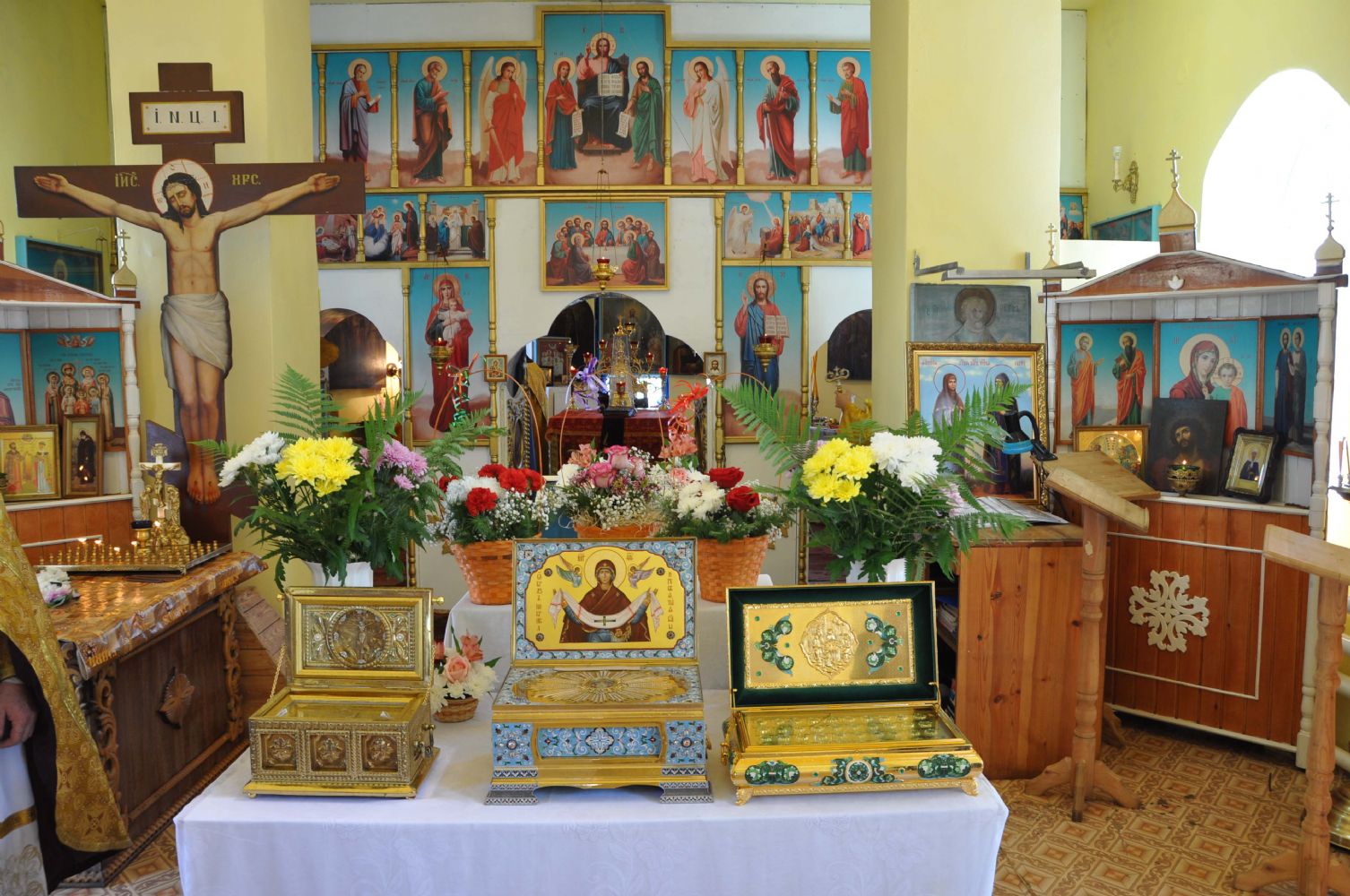 19 июня в храм Царственных Страстотерпцев по благословению Высокопреосвященнейшего архиепископа Йошкар-Олинского и Марийского Иоанна прибыли святыни: частичка ризы Пресвятой Богородицы, мощи святителя Николая Мирликийского, преподобного Серафима Саровского и других угодников Божиих. А 21 июня в приход с архипастырским визитом прибыл и сам владыка Иоанн.