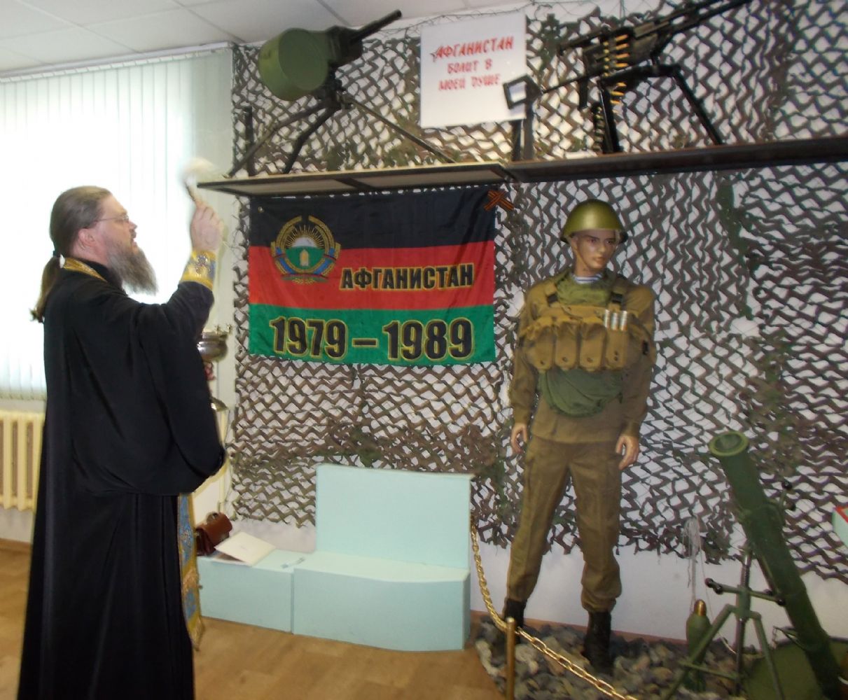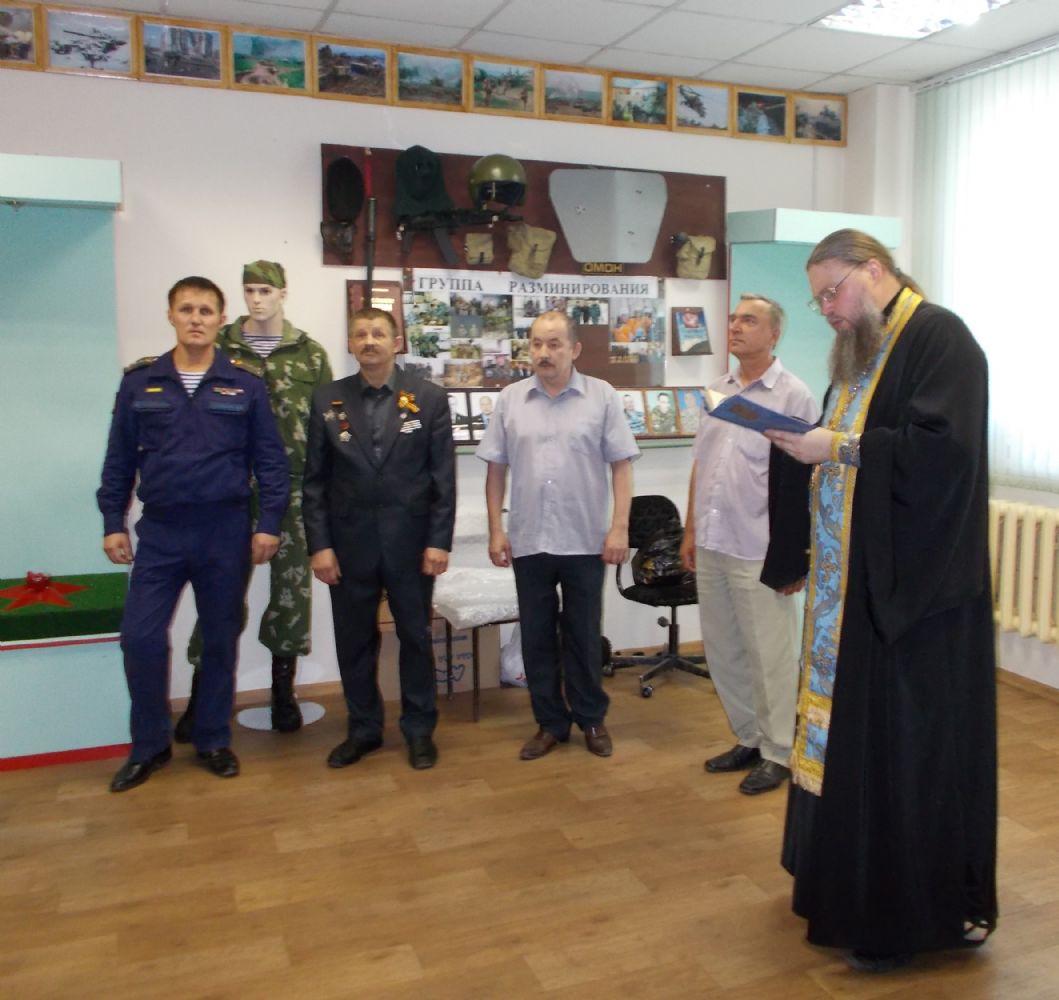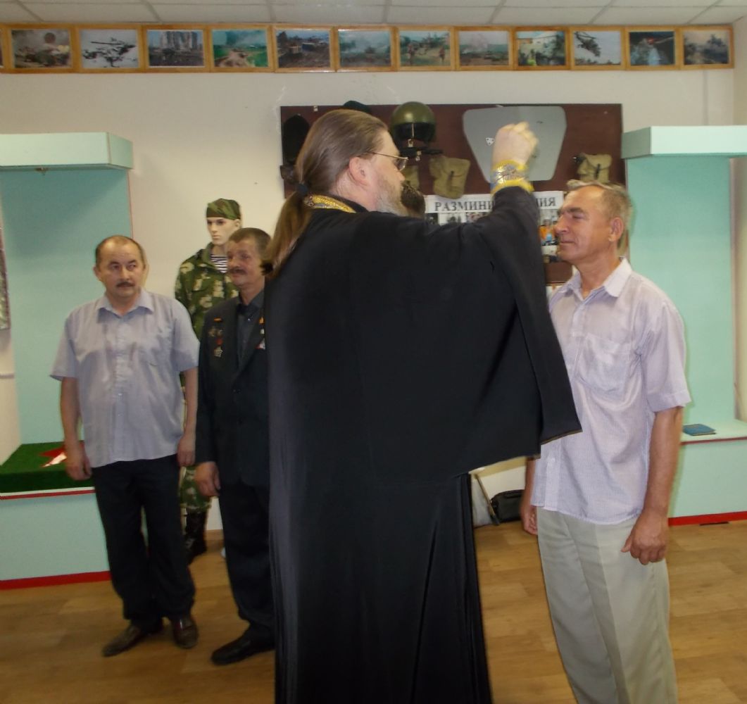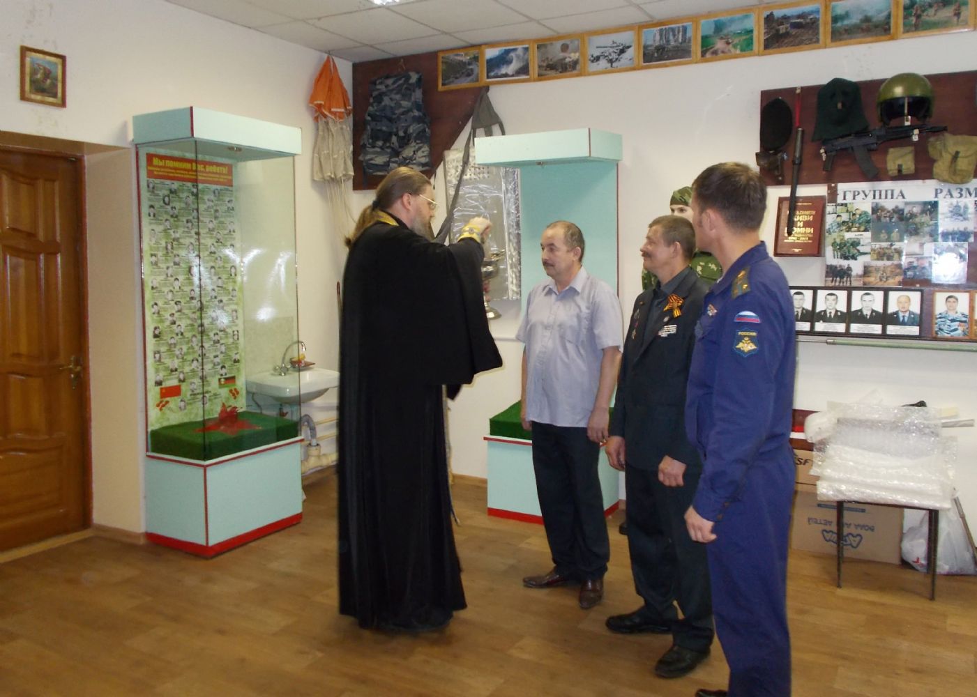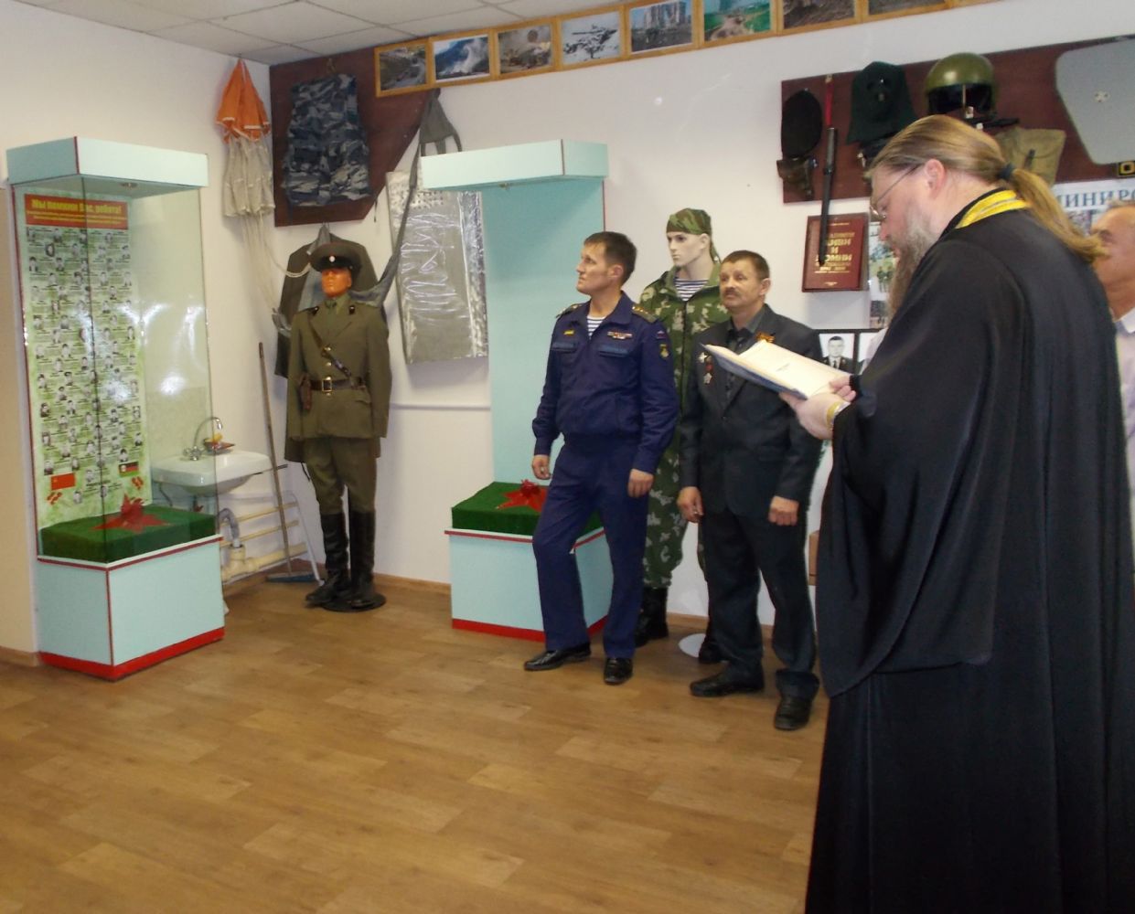 В данном мероприятии принял участие руководитель епархиального отдела по взаимодействию с вооруженными силами и правоохранительными органами священник Александр Бачурин. После чина освящения и окропления присутствующих святой водой протоиерей Александр Бачурин преподнес создателям музея образ святого великомученика Георгия Победоносца. Эта икона олицетворяет собой неразрывную связь воинства земного и небесного.