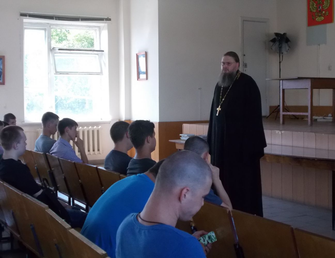 22 июня, в день памяти и скорби, состоялась встреча руководителя епархиального отдела по взаимодействию с вооруженными силами и правоохранительными органами священника Александра Бачурина с призывниками республиканского сборного пункта военного комиссариата.