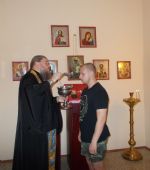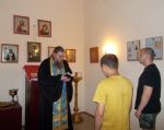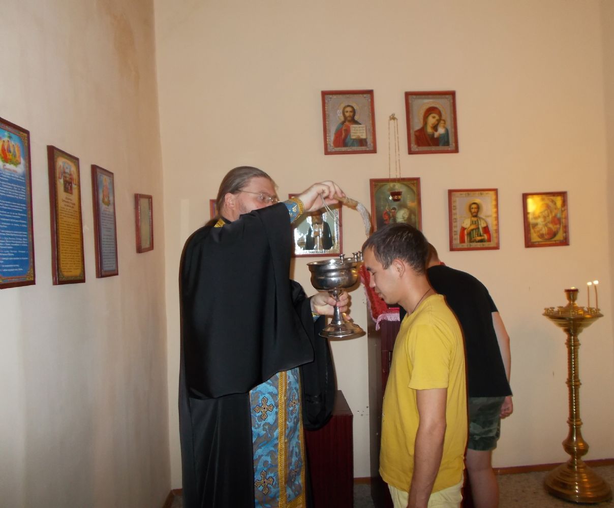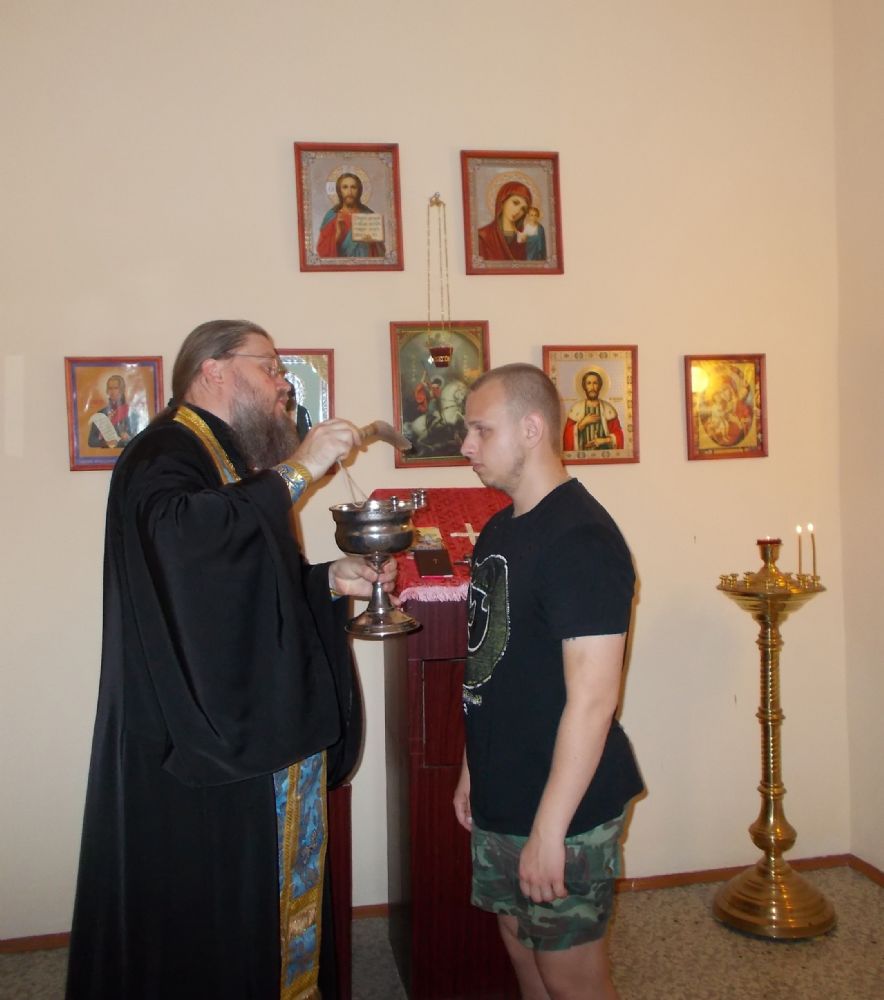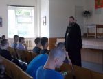 По окончании беседы был отслужен молебен святому великомученику Георгию Победоносцу с окроплением святой водой и благословением на воинскую службу будущих воинов.