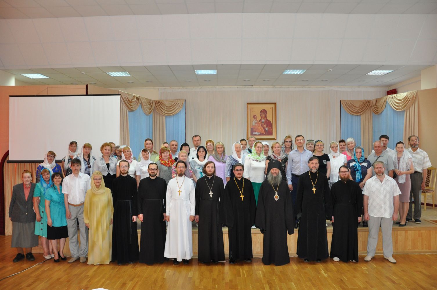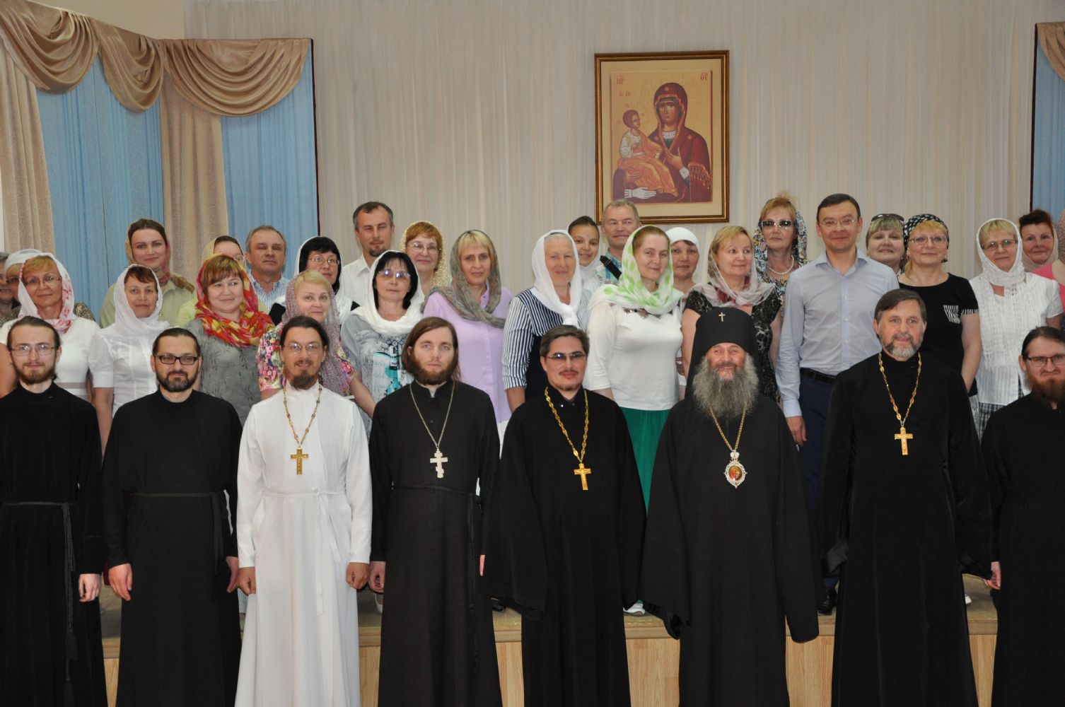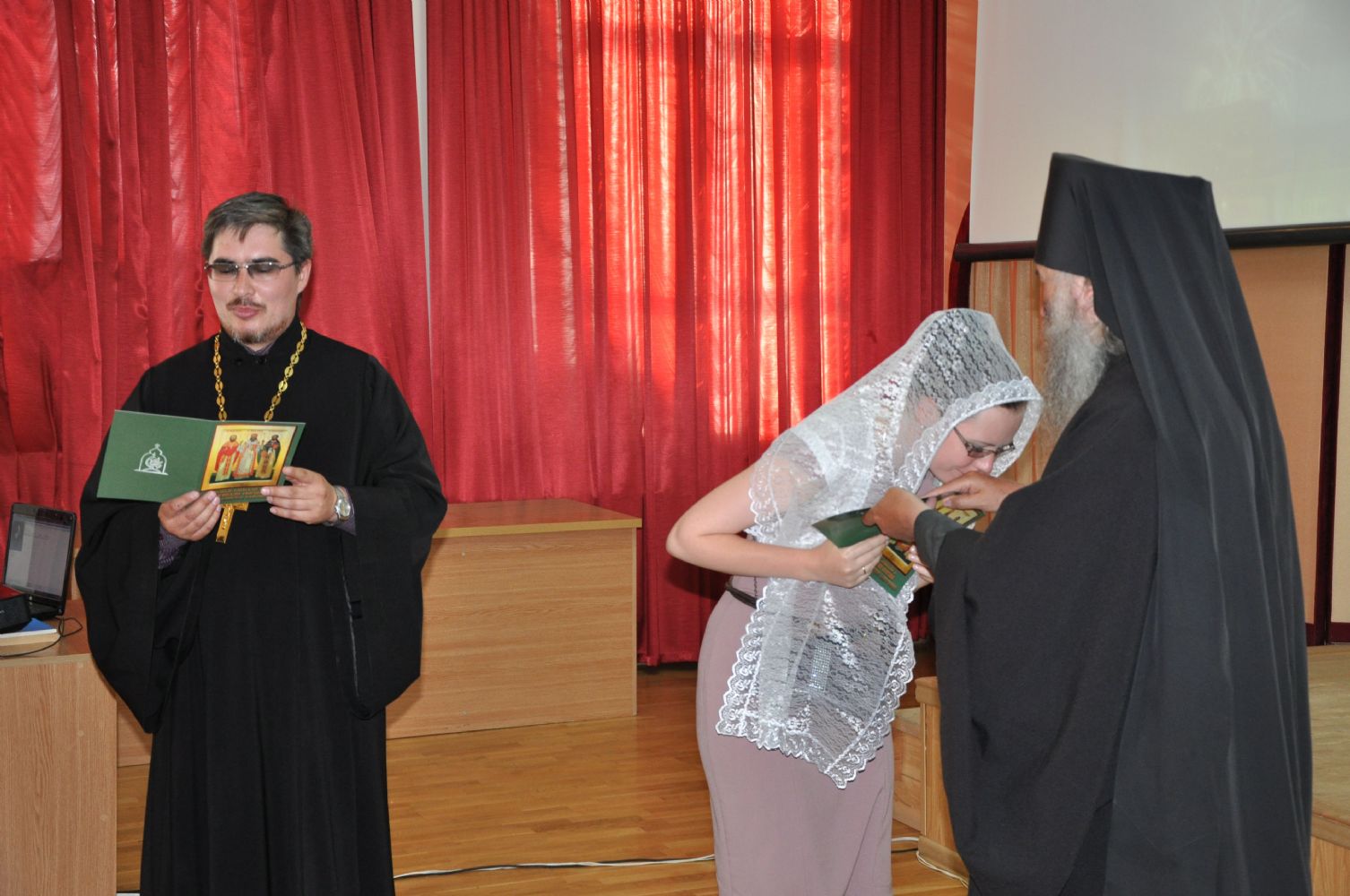 Впервые состоялся выпуск сразу двух групп. Начался он с благодарственного молебна всех присутствующих об успешном окончании учебного года и святому священномученику Адриану Троицкому, небесному покровителю курсов.