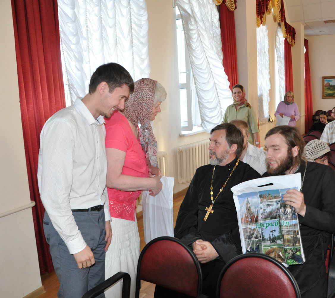 Затем в актовом зале Православного центра прозвучали приветственные слова архиепископа Йошкар-Олинского и Марийского Иоанна и руководителя Православных образовательных курсов иерея Александра Козлова. Праздник украсило выступление ансамбля «Согласие», который исполнил как духовные песнопения, так и русские народные напевы.