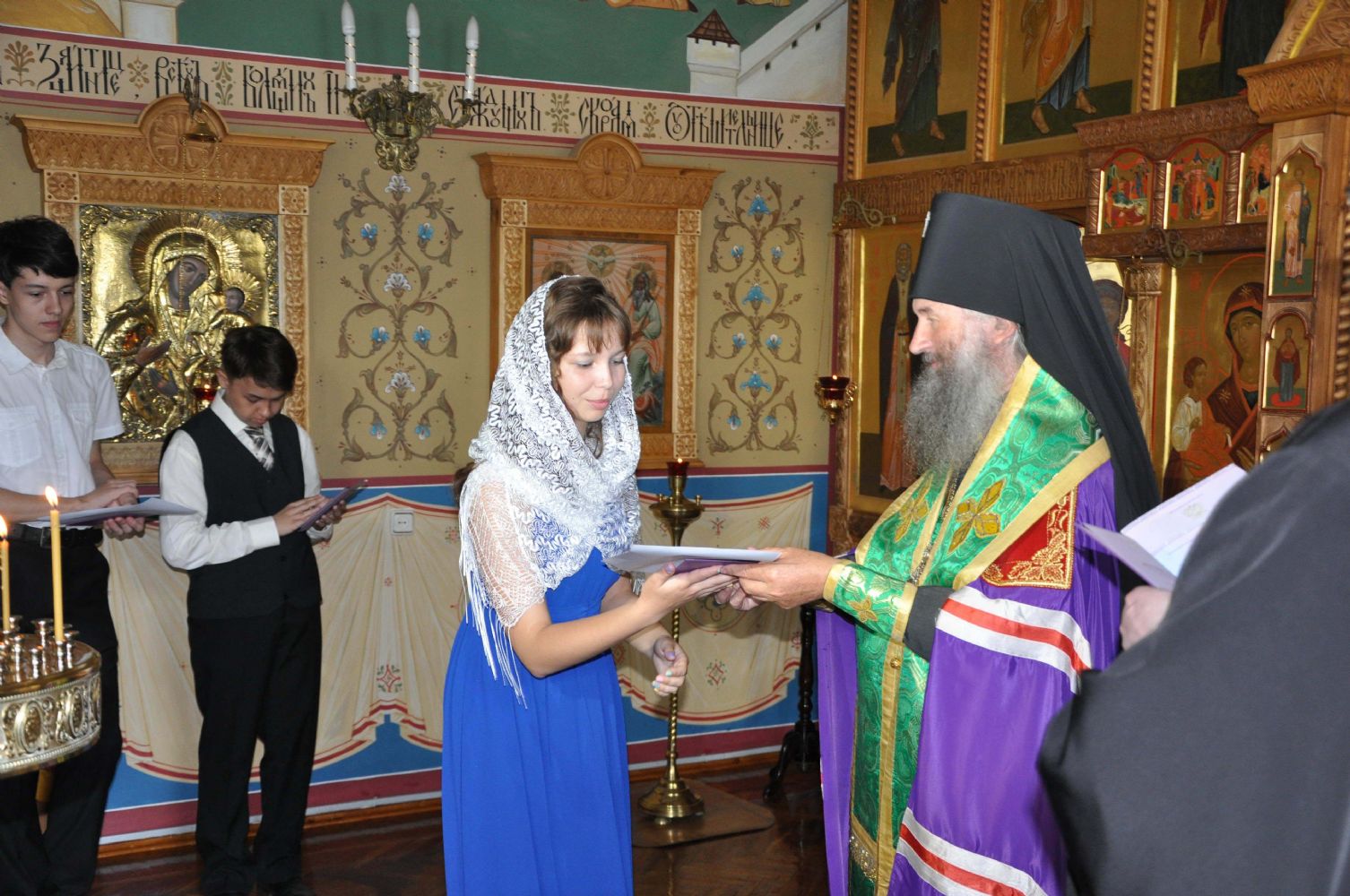 Вечером в 16 часов в Епархиальном домовом храме иконы Божией Матери «Троеручицы» Его Выоскопреосвященство совершил благодарственный молебен по случаю окончания обучения в православной гимназии имени прп. Сергия Радонежского.