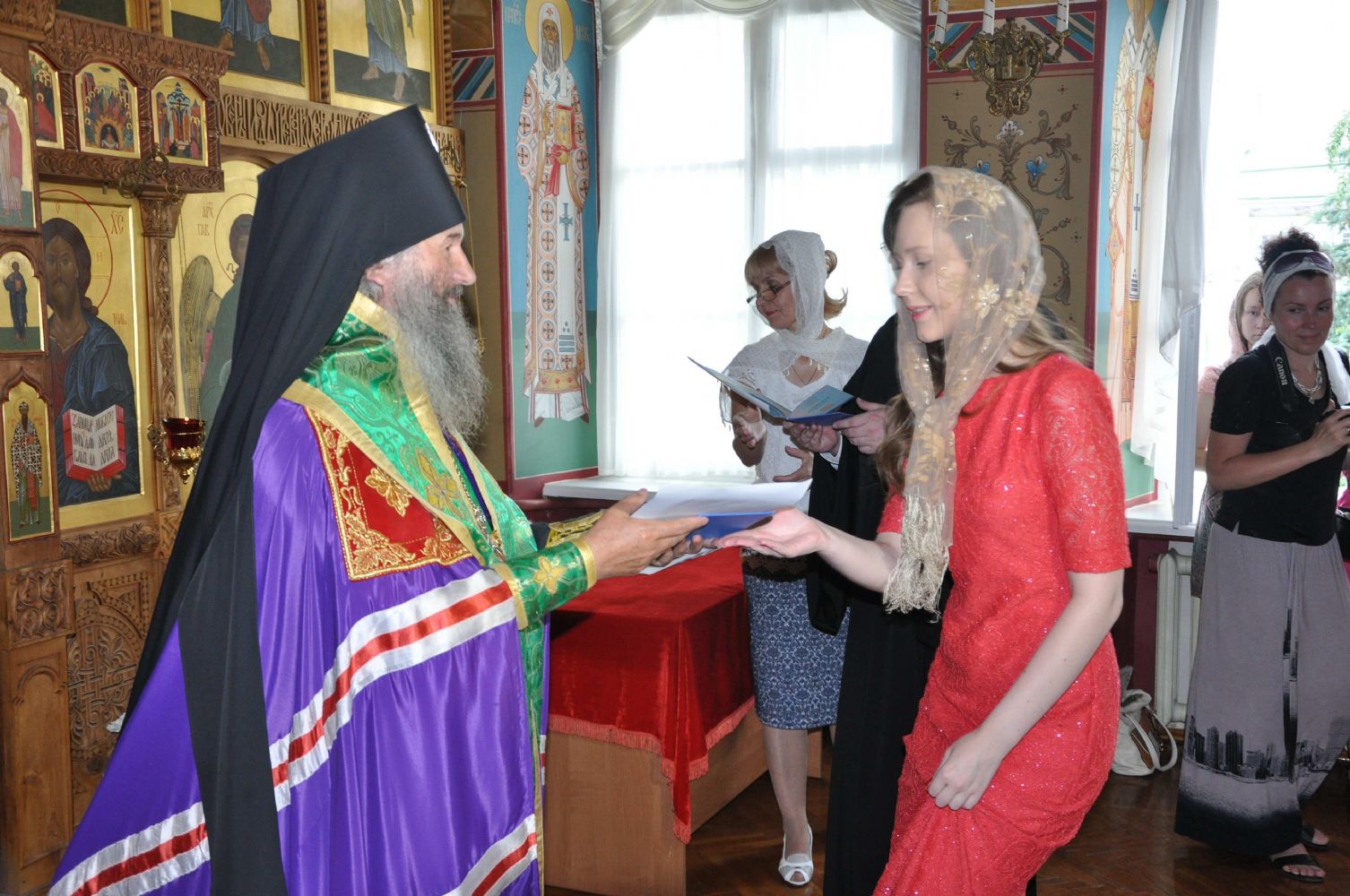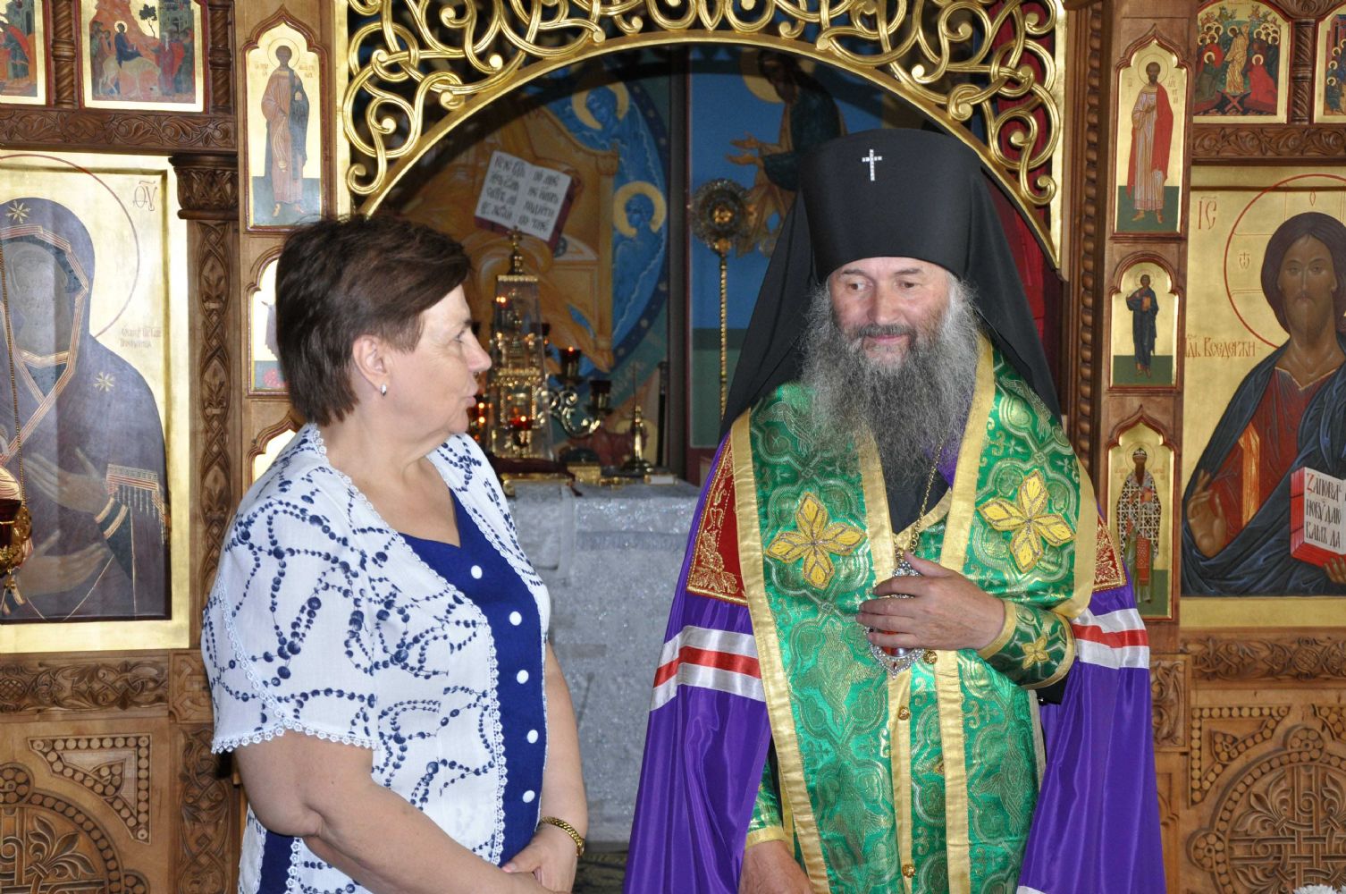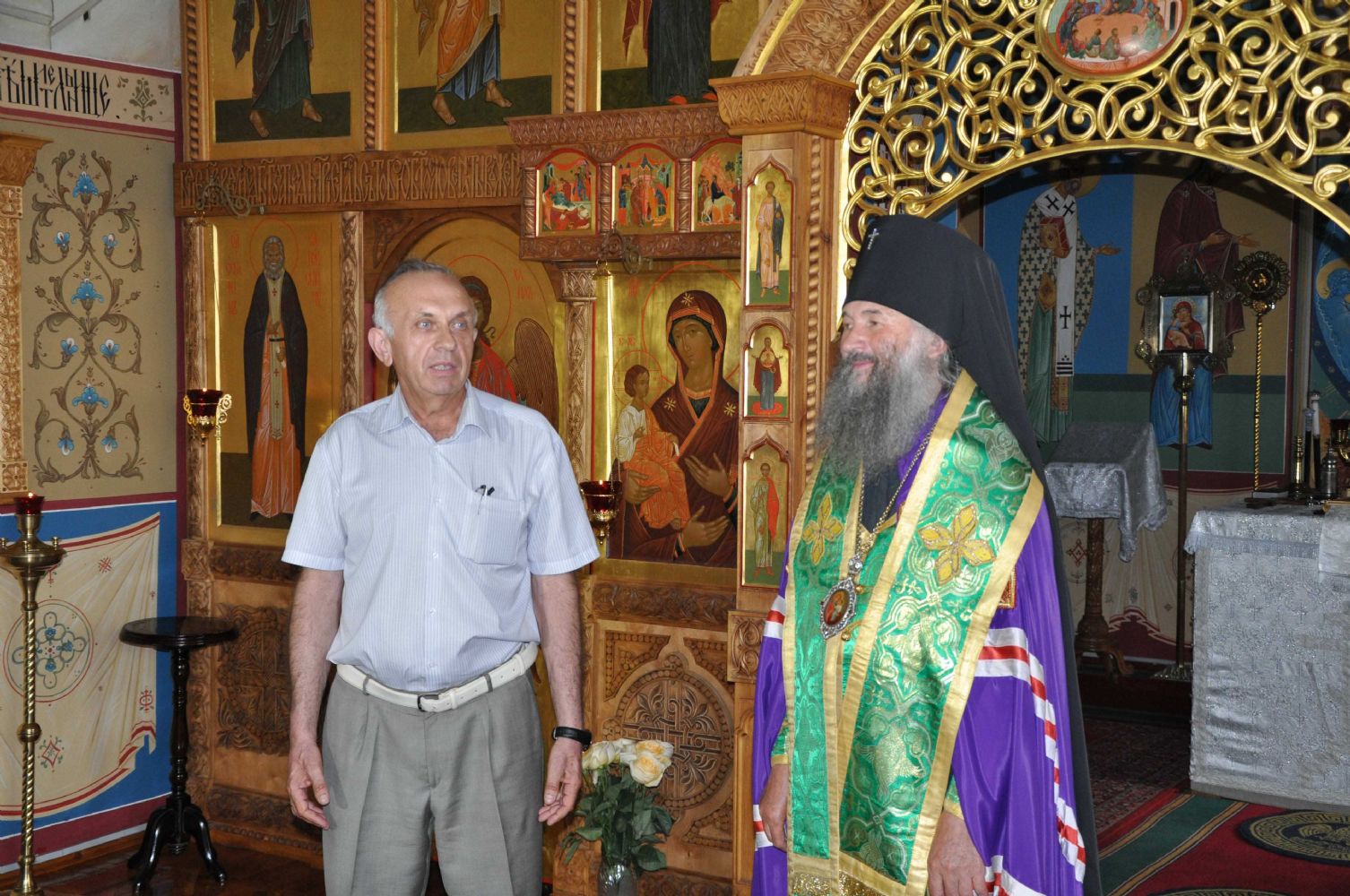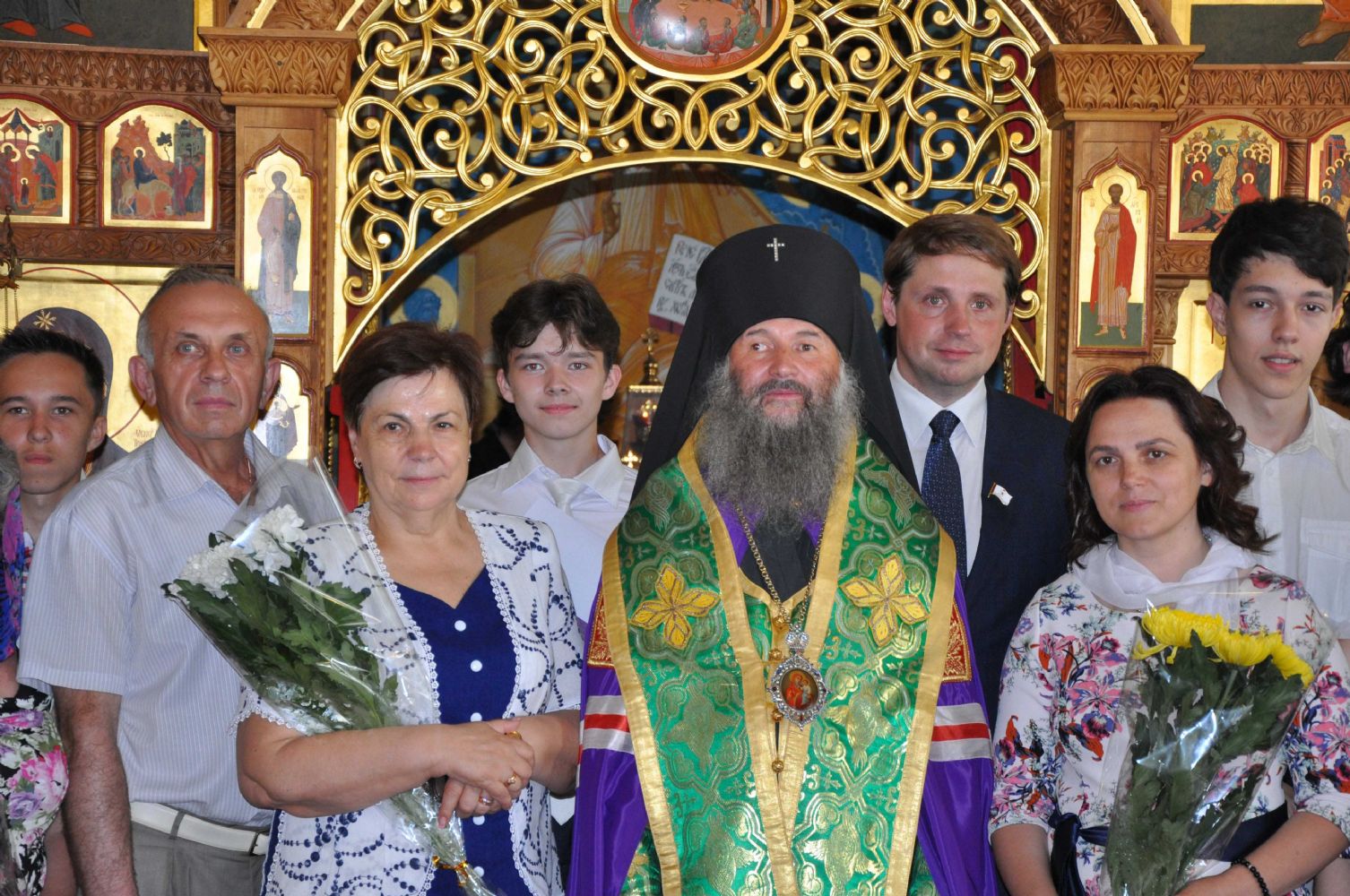 Владыка подарил матушке образ святителя Николая Чудотворца и богородичную просфору. После праздничной трапезы была сделана на память общая фотография.