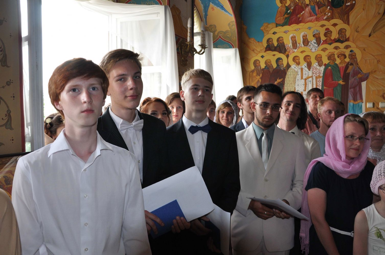 На молебне присутствовали выпускники 9 и 11 классов, преподаватели, директор школы протоиерей Евгений Сурков, также министр образования и науки Республики Марий Эл Г. Н. Швецова, ректор МарГУ М.Н. Швецов, начальник управления образования М.Я. Никитенко.
