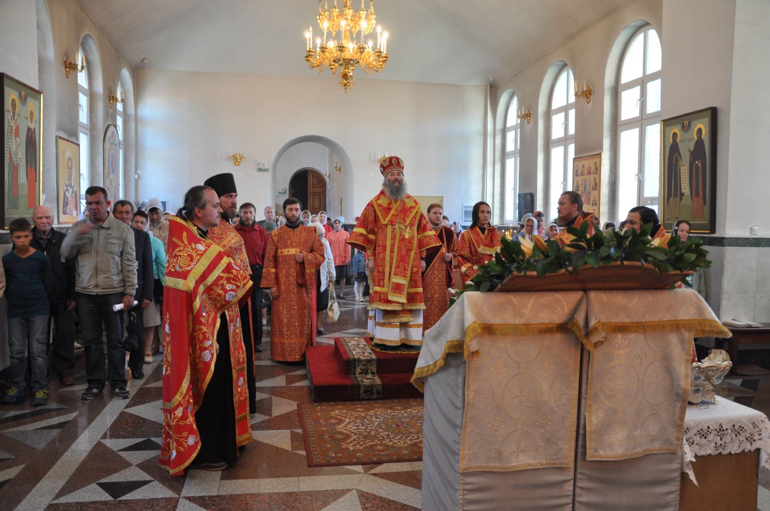 Накануне праздника Его Высокопреосвященство совершил Всенощное бдение в Воскресенском соборе г. Йошкар-Олы. Владыке сослужили: настоятель храма протоиерей Сергий Поглазов, клирики собора, священники Леонид Вылекжанин и Никифор Захаров, а так же секретарь Епархиального управления иеромонах Серафим (Пасанаев).
