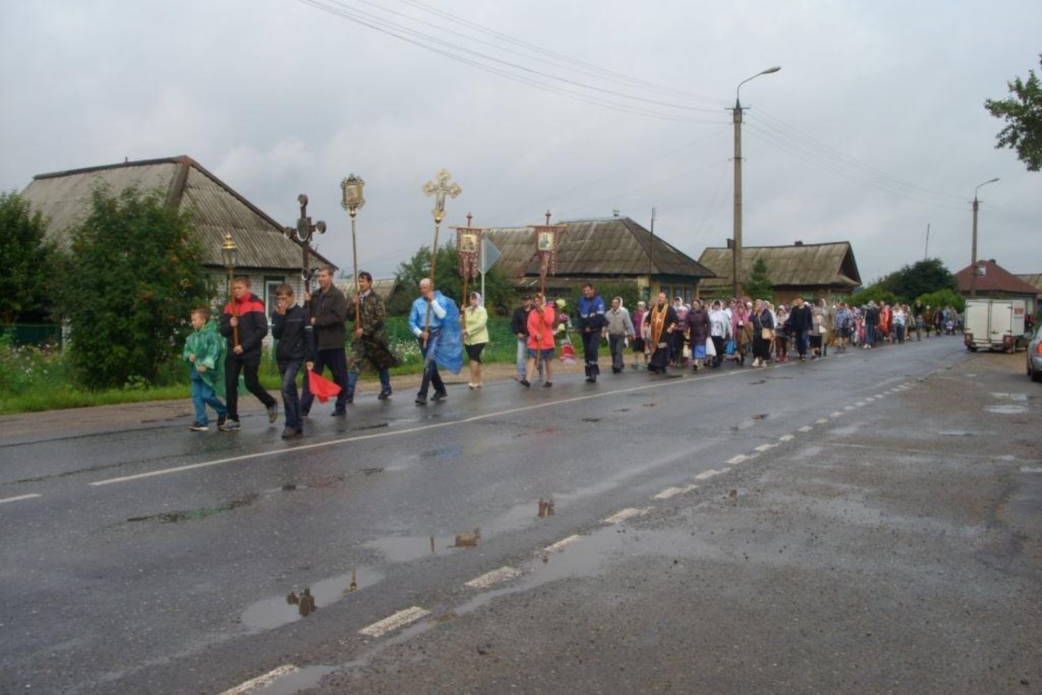 Божественная Литургия и молебен в этот день прошли в храме при большом стечении народа. А затем состоялся традиционный для этого праздника 10-километровый Крестный ход с иконой Казанской Божией Матери вокруг поселка.