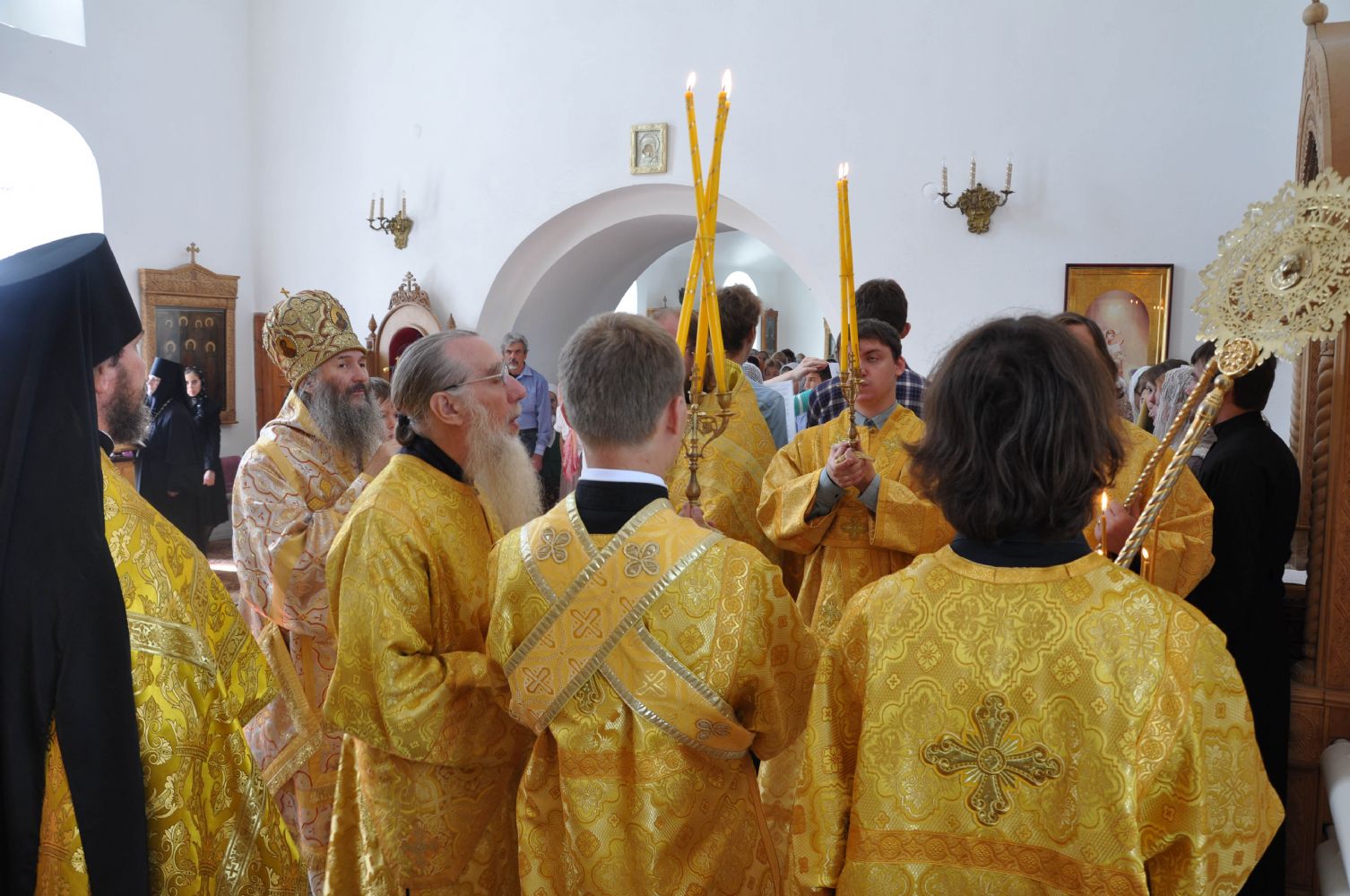 Владыке сослужили: секретарь епархиального управления иеромонах Серафим (Пасанаев) и клирик монастыря иерей Михаил Лежнин. Богослужебные песнопения исполнил архиерейский детско-юношеский хор «Благовест» под управлением регента Татьяны Черновой.