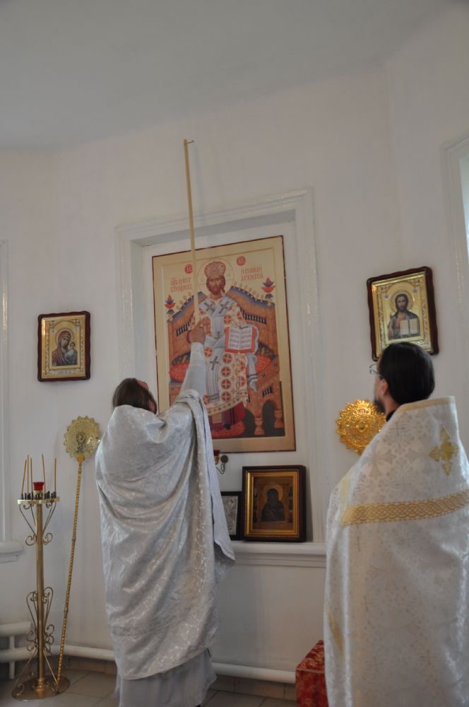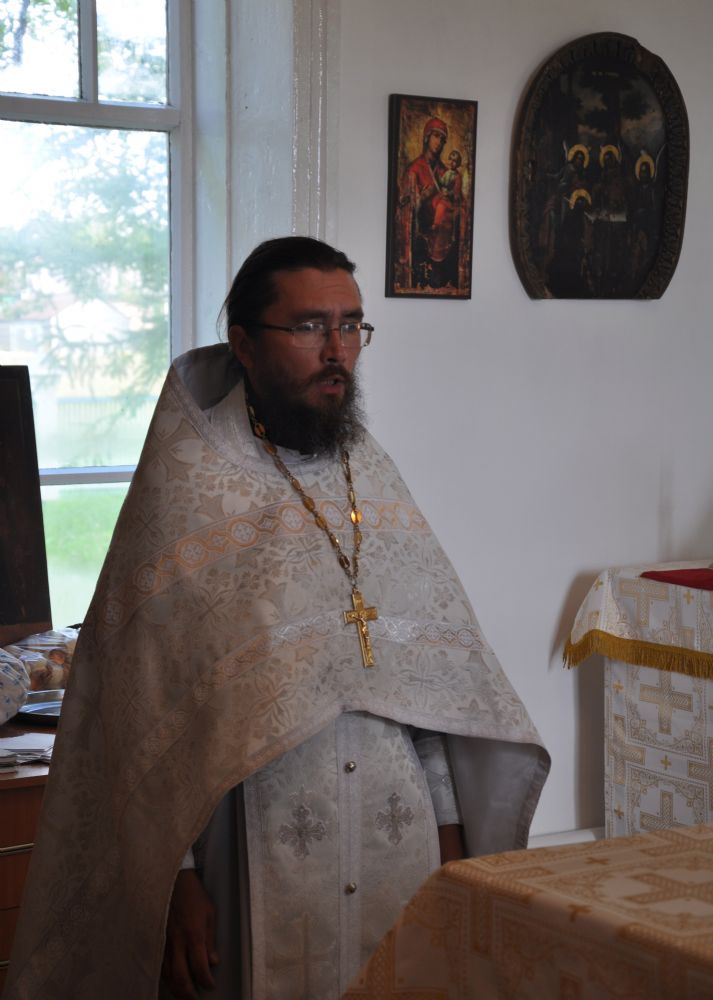 Владыке сослужили: секретарь епархиального управления иеромонах Серафим (Пасанаев), настоятель храма протоиерей Сергий Бажанов, настоятель храма в честь Иконы Божией «Державная» п. Медведево протоиерей Алексий Михайлов, настоятель храма в честь Рождества Иоанна Предтечи п. Оршанка иерей Димитрий Вылекжанин.
