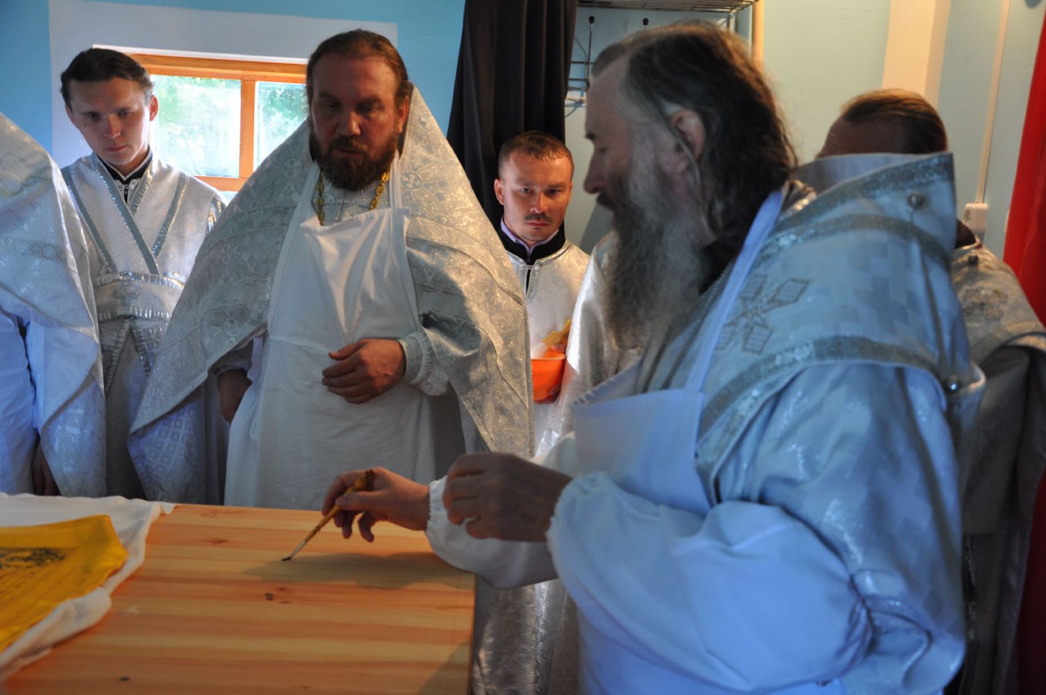 Владыке сослужили: секретарь Епархиального управления иеромонах Серафим (Пасанаев), настоятель храма протоиерей Сергий Колобков, благочинный Северо-Западного церковного округа, настоятель храма в честь святого пророка Илии п. Килемары протоиерей Андрей Романов и клирик Вознесенского кафедрального собора г. Йошкар-Олы иерей Александр Лоскутов.