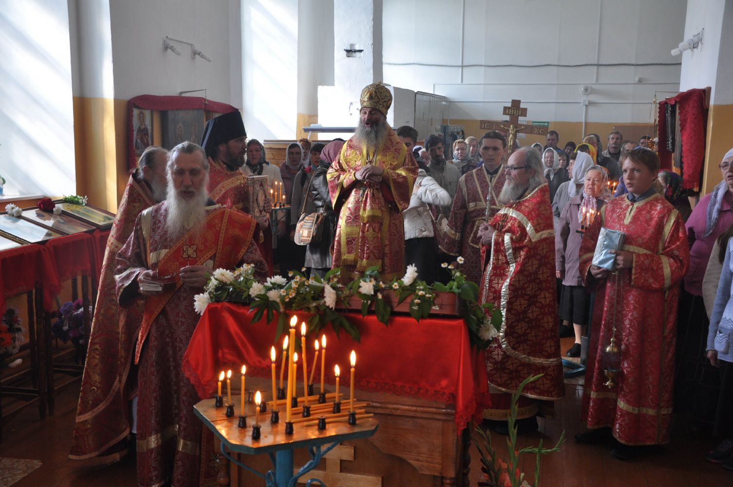 В день престольного праздника за Божественной литургией Архипастырю сослужили настоятель храма протоиерей Виктор Немцев, секретарь епархиального управления иеромонах Серафим (Пасанаев) и клирики Северо-Западного церковного округа: настоятель храма Покрова Пресвятой Богородицы с. Упша протоиерей Михаил Нехорошков и настоятель храма в честь Рождества Иоанна Предтечи иерей Димитрий Вылекжанин.