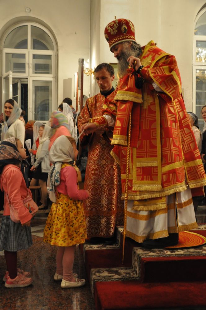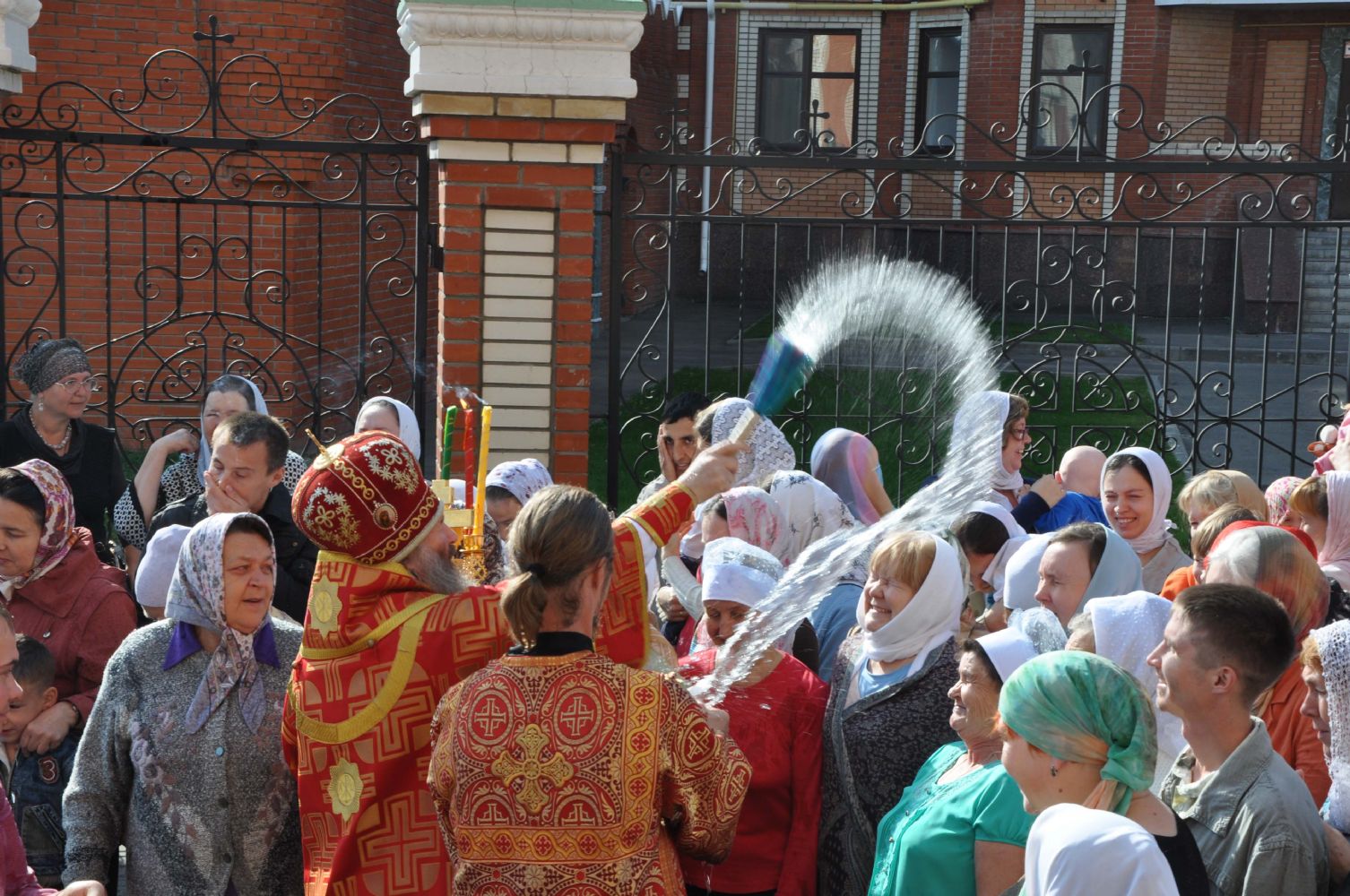 По возвращении в храм правящий архиерей, обратившись к молящимся, поздравил всех с престольным праздником: «Пусть Господь Всемилостивый и Всещедрый воскресит погрязшие во грехах наши души и сердца наши очистятся покаянием и Воскресший Христос пребывает со всеми нами».