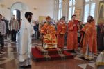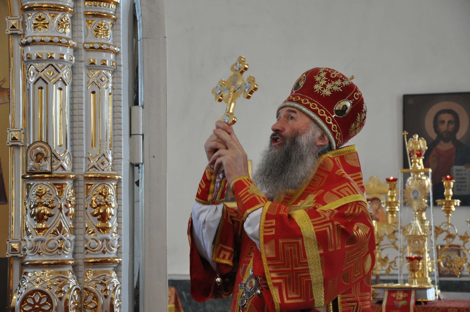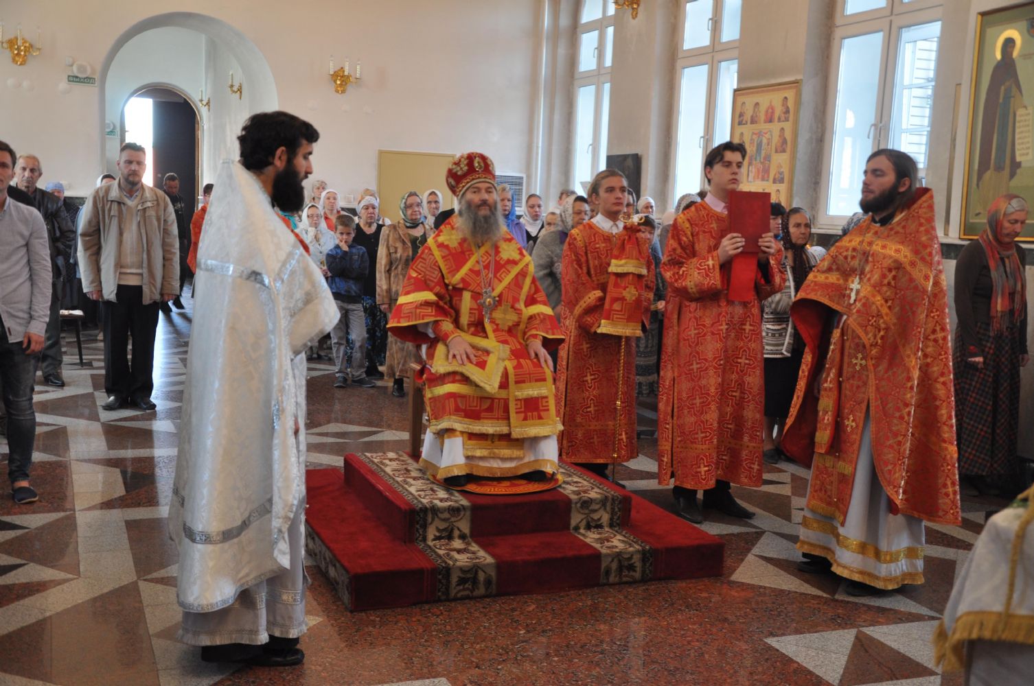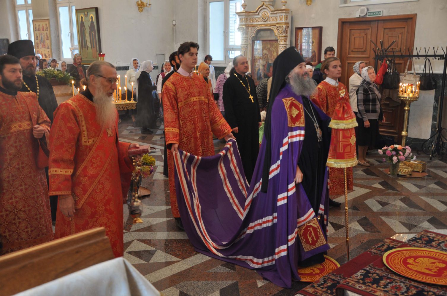 Владыке сослужили: секретарь епархии иеромонах Серафим (Пасанаев), настоятель собора протоиерей Сергий Поглазов и клирик храма иерей Никита Смирнов. По окончании Божественной литургии был совершен праздничный крестный ход вокруг собора.