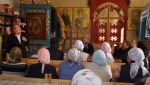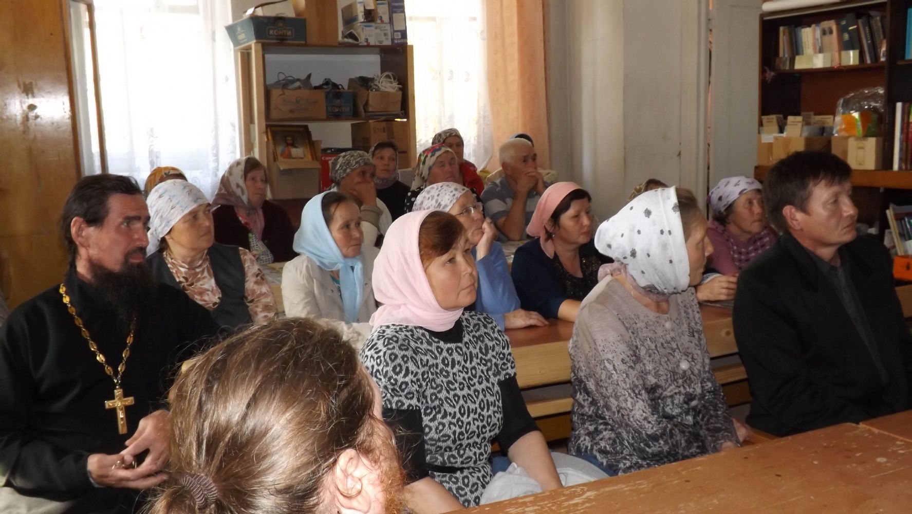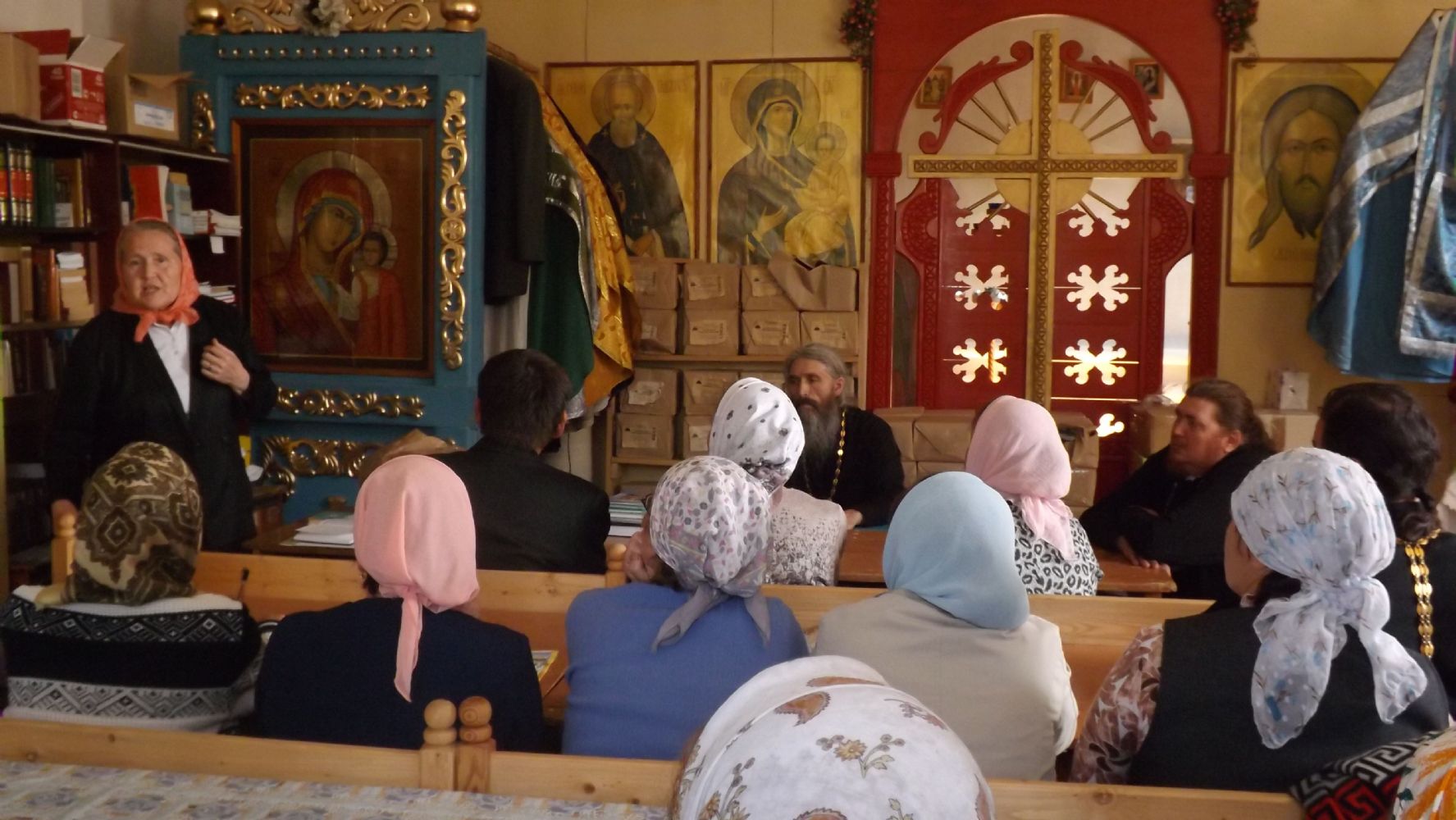 После завершения службы всех прихожан пригласили на чаепитие и душеполезную беседу. На вопросы прихожан отвечали батюшки, а о работе переводческой комиссии рассказала ее сотрудница Анастасия Чемекова. Всем присутствующим раздали литературу о православной вере и книги Священного Писания «У Сугынь» и «Псалтирь».
