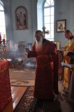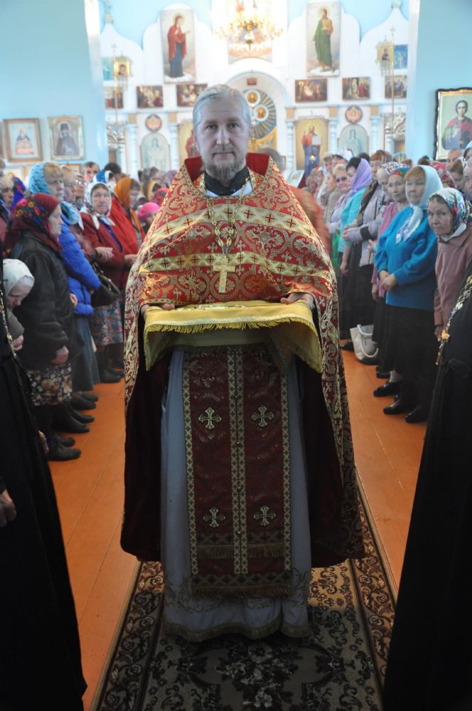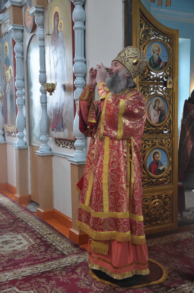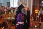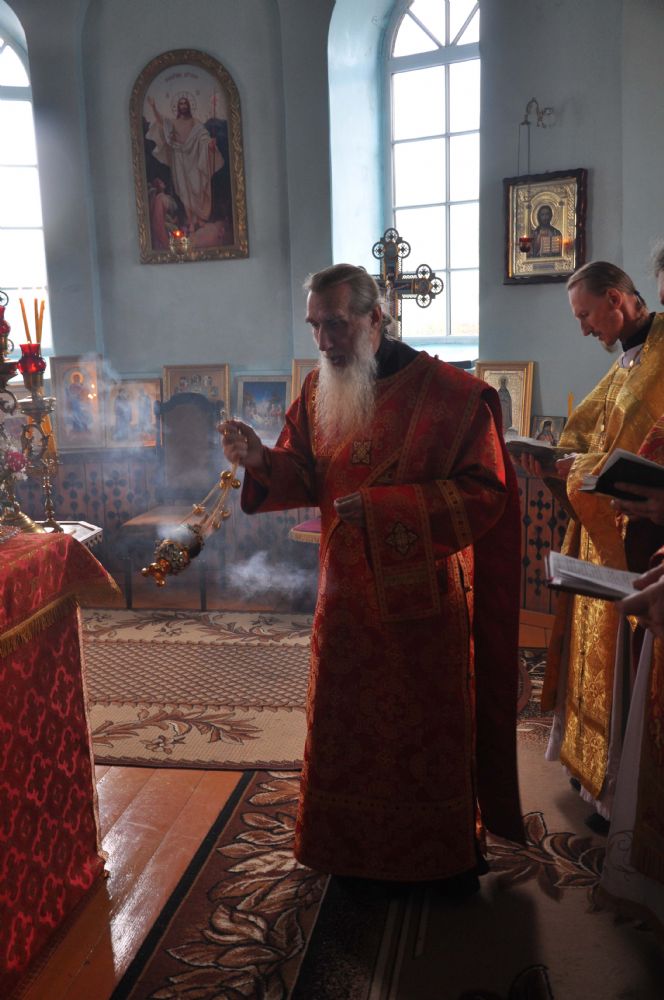 Владыке сослужили: секретарь епархии иеромонах Серафим (Пасанаев), настоятель храма протоиерей Леонтий Очетов, настоятель храма Покрова Пресвятой Богородицы с. Эмеково протоиерей Евгений Усков, настоятель храма в честь Рождества Христова с. Арино протоиерей Николай Чузаев и настоятель храма в честь святителя Николая Мирликийского чудотворца с. Микряково иерей Александр Лукьянов.