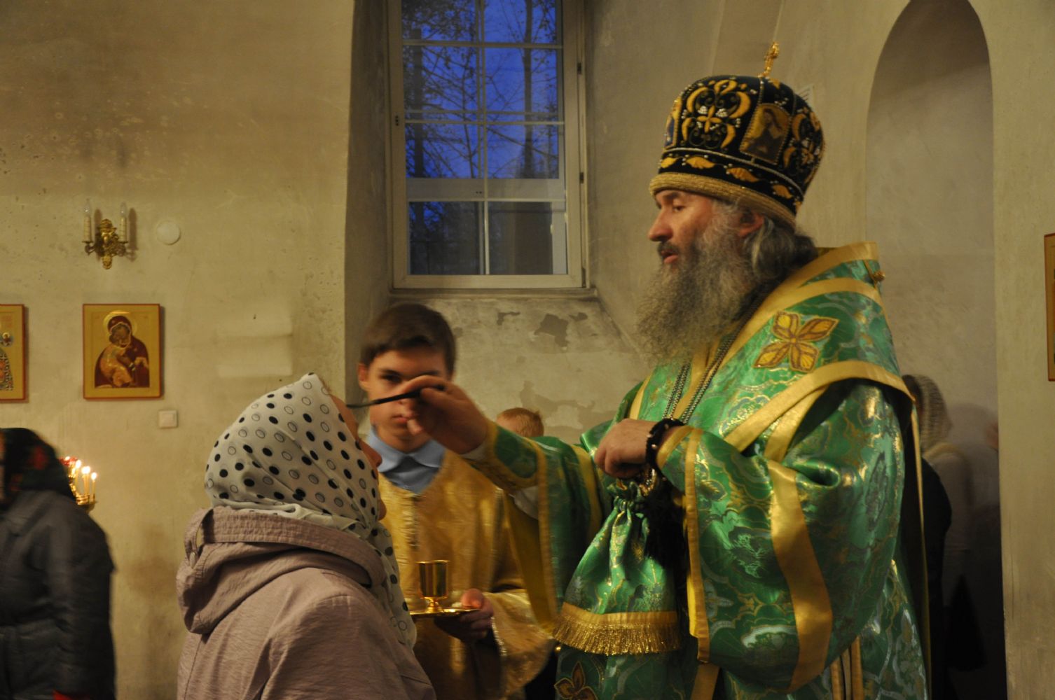 Владыке сослужили: секретарь епархии иеромонах Серафим (Пасанаев), благочинный Северо-Западного округа, настоятель храма пророка Илии п. Килемары протоирей Андрей Романов, благочинный Пригородного округа, настоятель храма в честь иконы Божией Матери «Казанская» с. Нурма иерей Александр Коваль, настоятель храма преподобномученика Андрея Критского с. Елембаево протоиерей Сергий Бажанов и клирик монастыря иерей Александр Киселев.