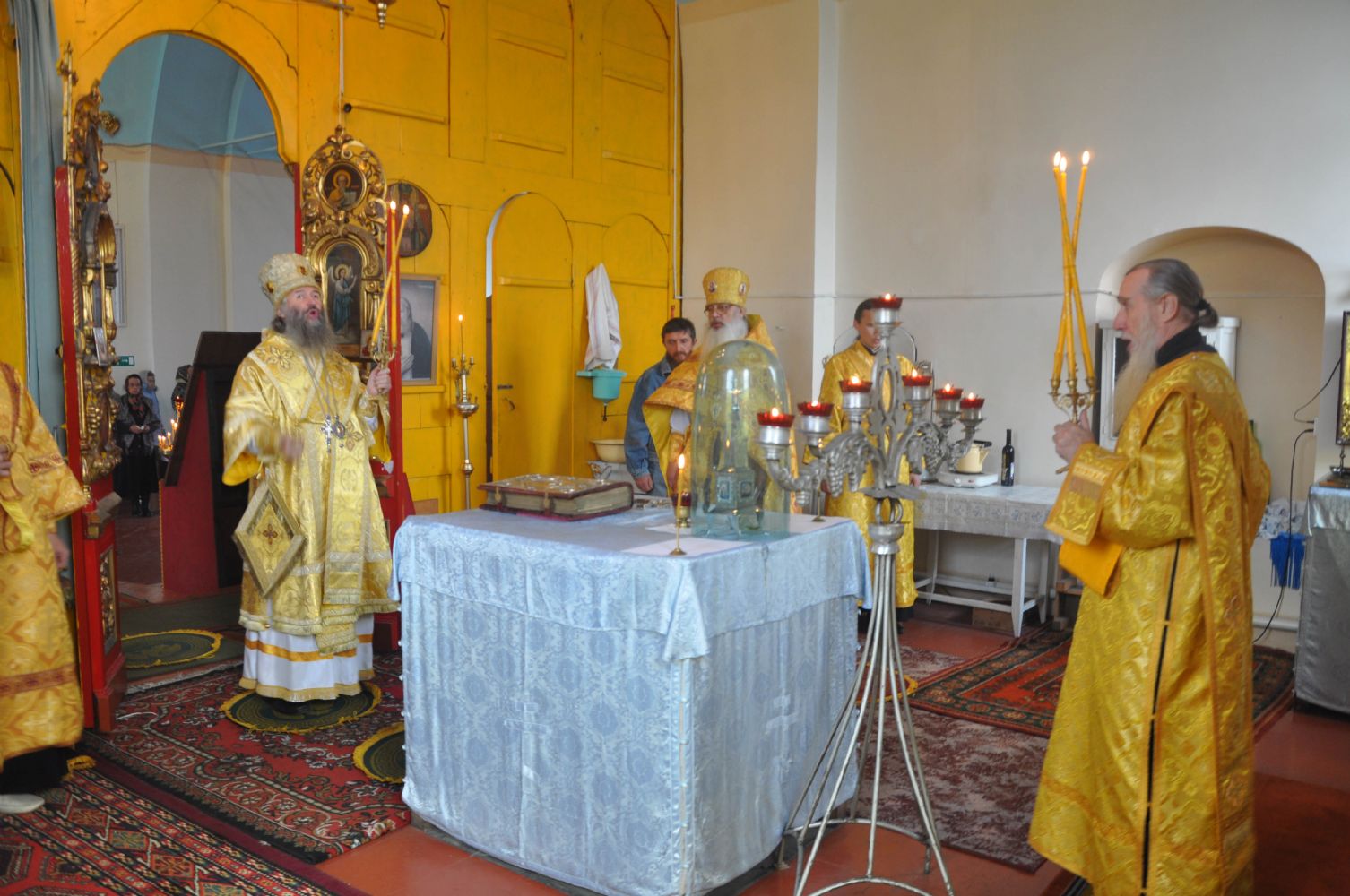 Его Высокопреосвященству сослужили: секретарь епархии иеромонах Серафим (Пасанаев), благочинный Северного церковного округа, настоятель храма в честь Вознесения Господня п. Новый Торъял митрофорный протоиерей Вячеслав Ершов, настоятель храма Покрова Пресвятой Богородицы с. Мари-Сола протоиерей Сергий Сильдушкин и настоятель храма в честь Воздвижения Креста Господня с. Кукнур протоиерей Николай Суринов.
