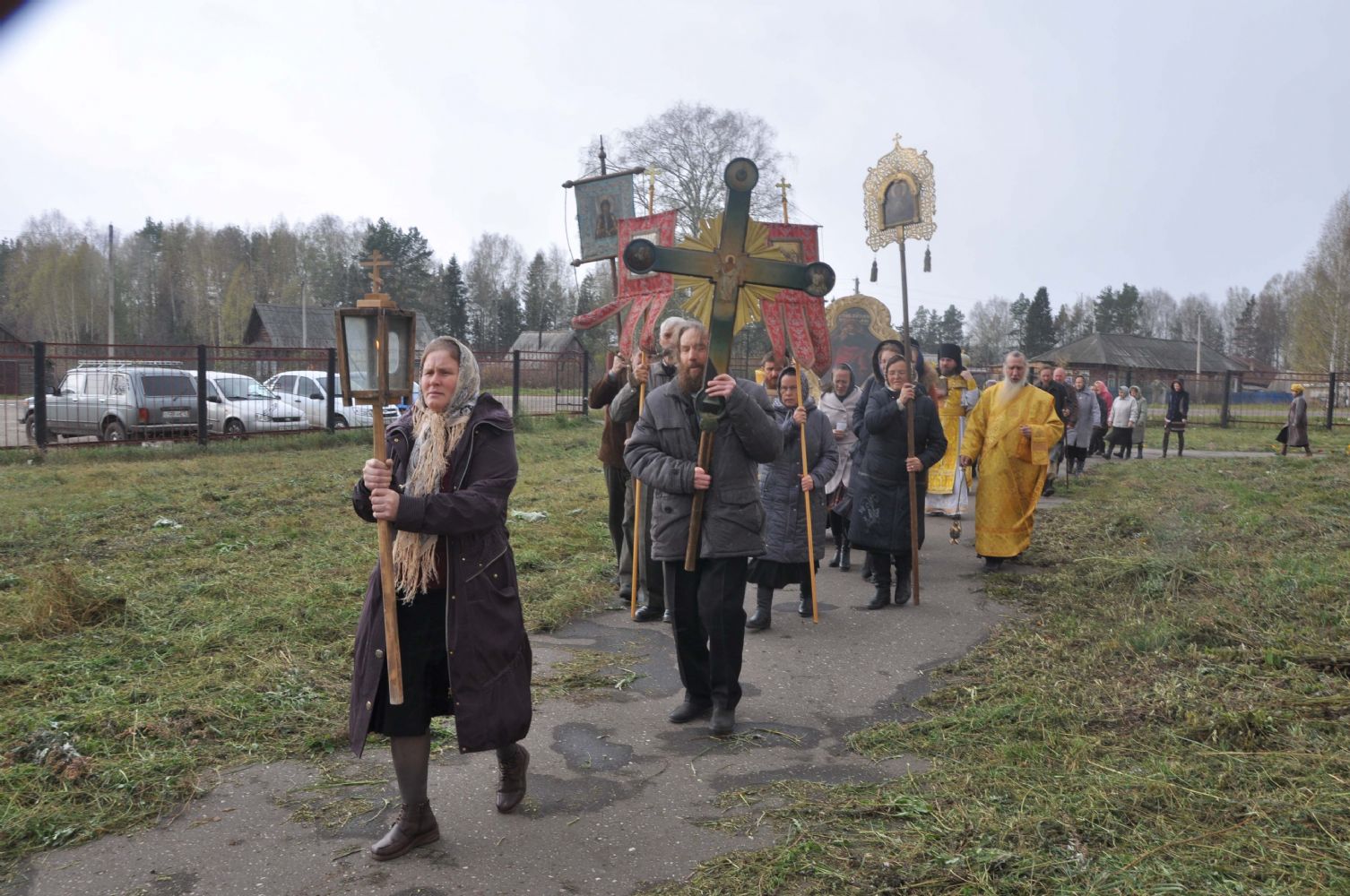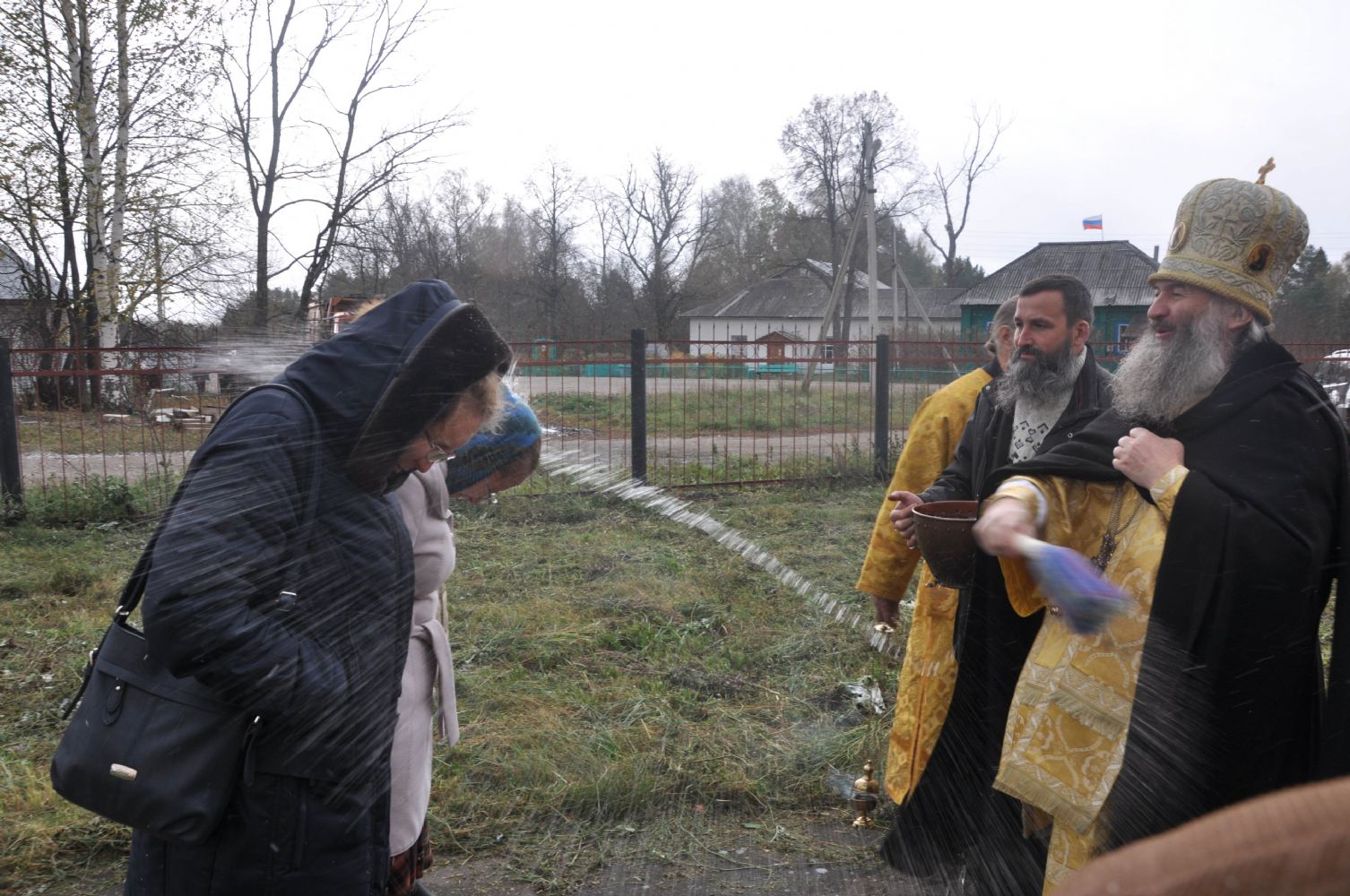 По окончании Литургии был совершен крестный ход вокруг храма. Владыка поздравил всех с престольным праздником и обратился к молящимся с архипастырским словом.