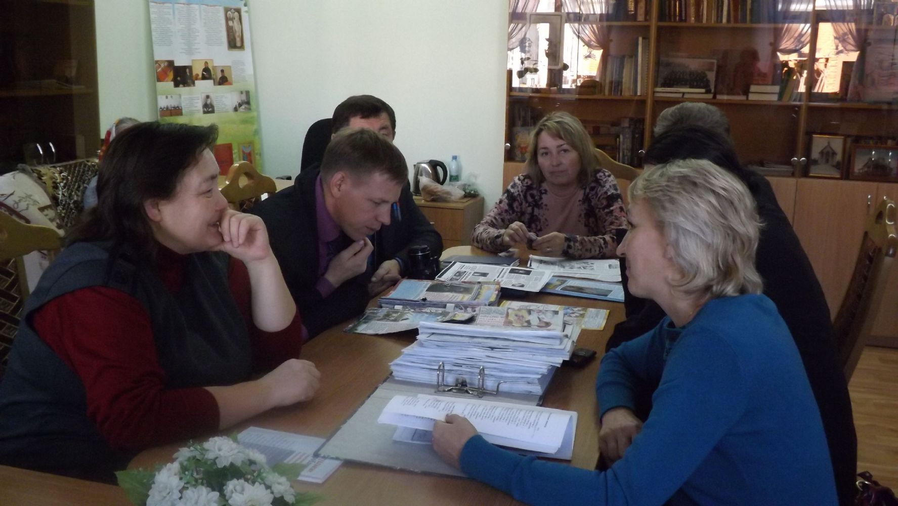 Так как журналисты, пишущие на марийском языке на православную тематику, испытывают трудности в написании названий церквей, икон и других церковнославянских слов за круглым столом обсудили некоторые часто встречающиеся слова и спорные моменты. Сотрудники переводческой комиссии подготовили для коллег короткий словарь-справочник, а так же церковный календарь на 2016 год.