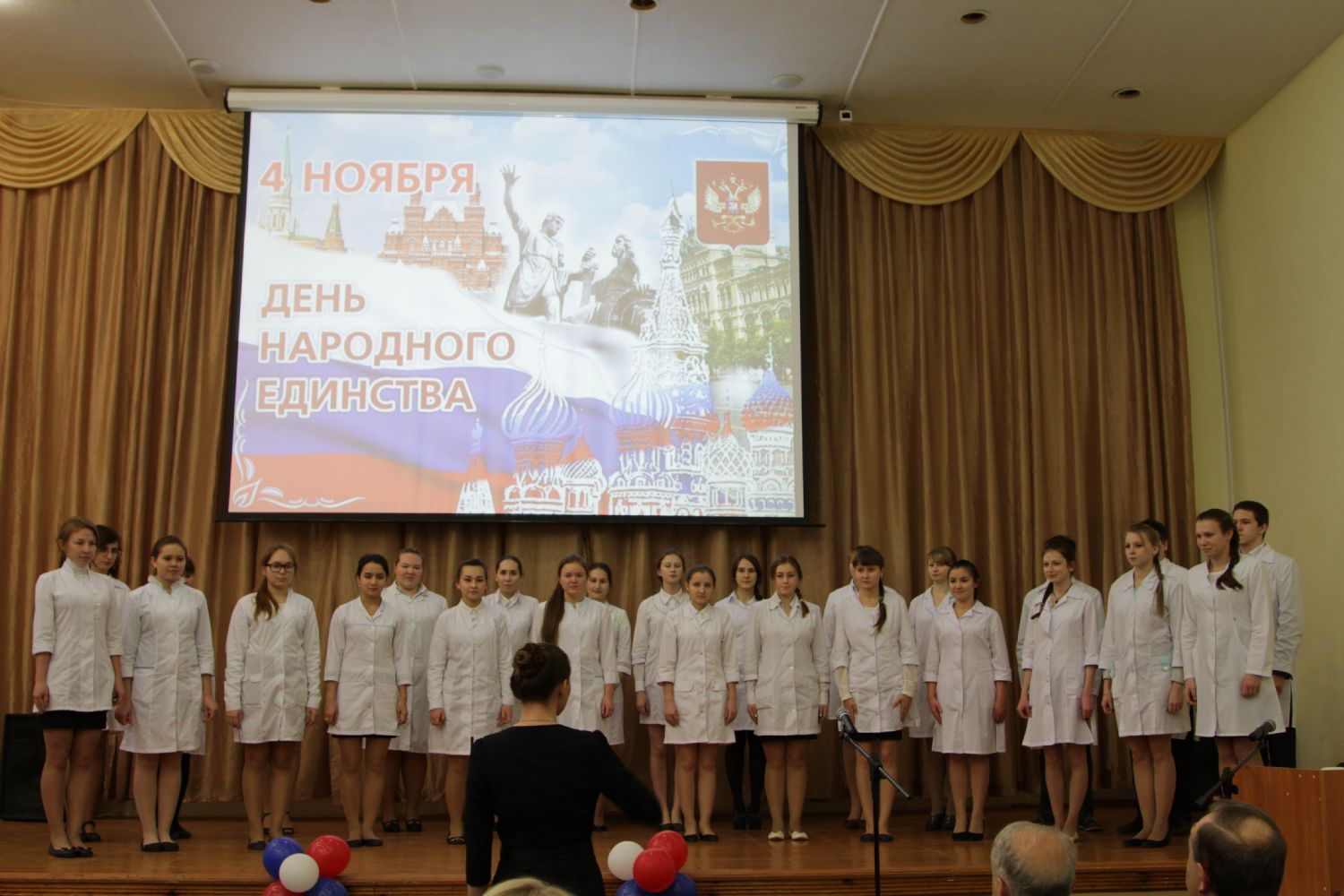 Студенты медколледжа рассказали об истории праздника Дня народного единства, о его главном символе – Казанской иконе Божией Матери и героях народного ополчения — Минине и Пожарском. Хор студентов колледжа исполнил тропарь иконе Божией Матери «Казанская».
