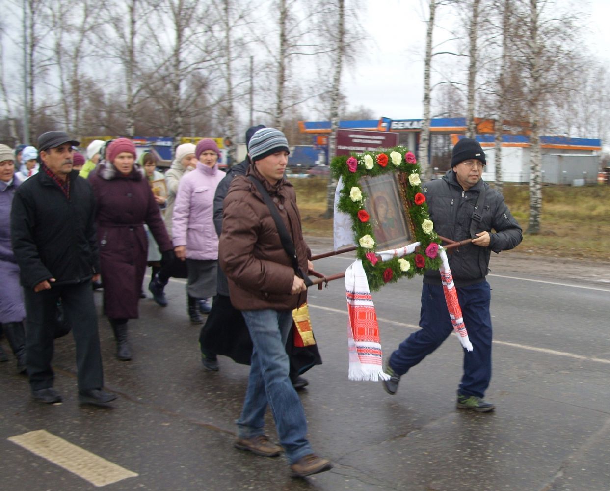 4 ноября после Божественной литургии и молебна с акафистом по сложившейся традиции был совершен крестный ход вокруг поселка с храмовой Казанской иконой Божией Матери.