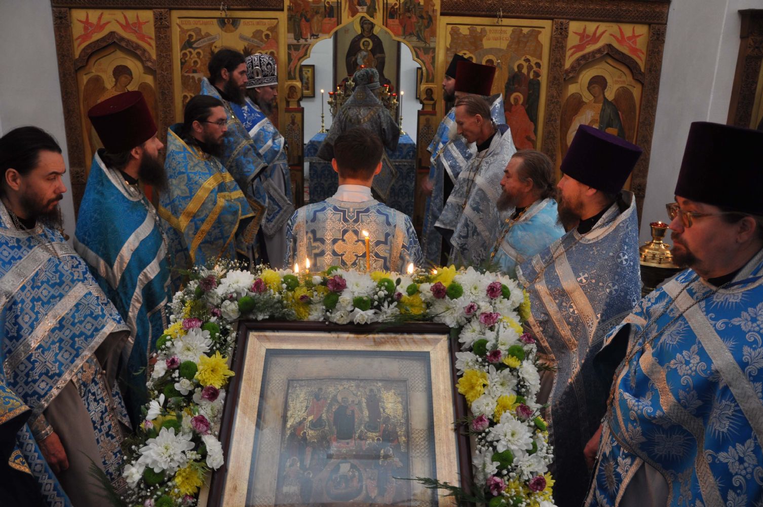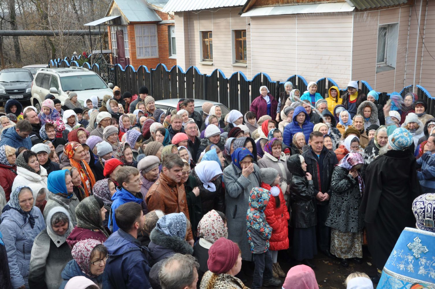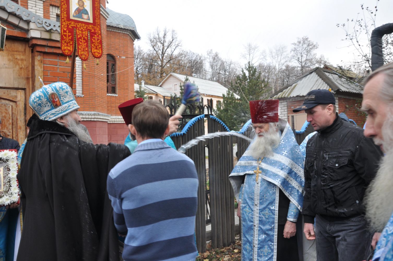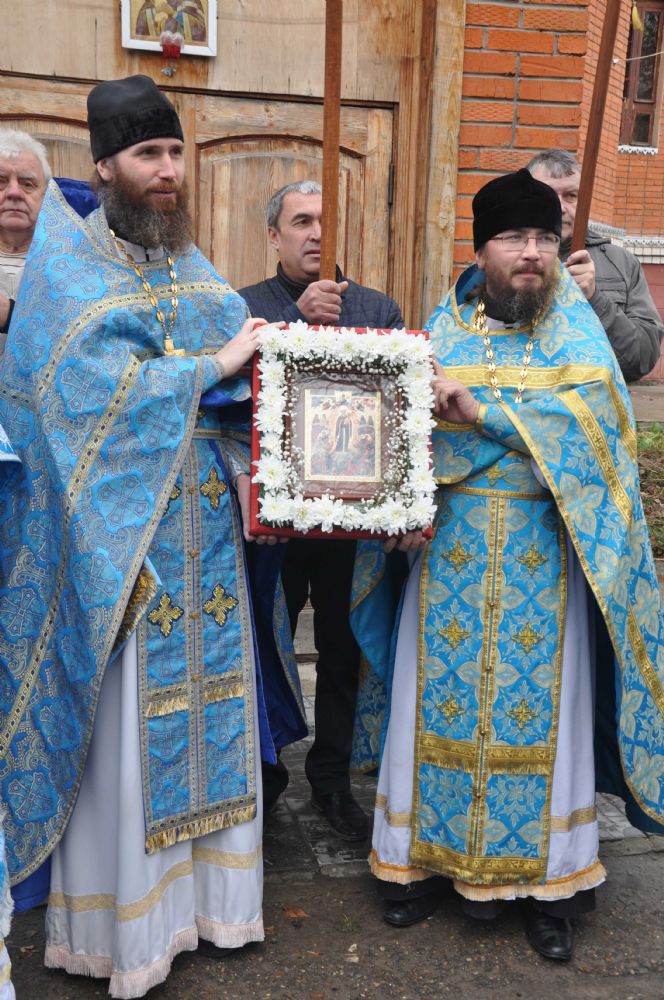 По окончании Литургии был совершен крестный ход вокруг храма. Архипастырь поздравил всех с престольным праздником и пожелал, чтобы Покров Пречистой Богоматери всегда распростирался над всеми нами.