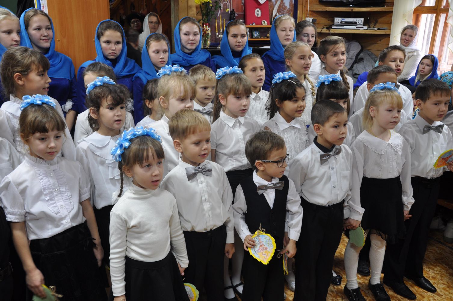 Перед гостями и прихожанами выступили с песнопениями учащиеся воскресной школы.