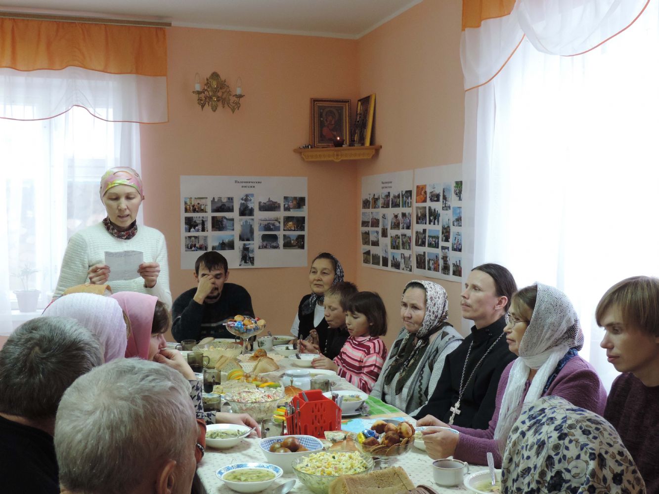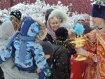 Этот день является еще и престольным праздником для нашей церкви, так как один из приделов освящен именно в честь этого великого святого. С утра в храме прошло праздничное Богослужение, которое завершилось крестным ходом вокруг храма. Затем все прихожане и гости были приглашены в трапезную. Здесь после праздничного обеда присутствующим была показана презентация об истории храма, небольшой фильм о приходской жизни, прозвучали песни в исполнении церковного хора.