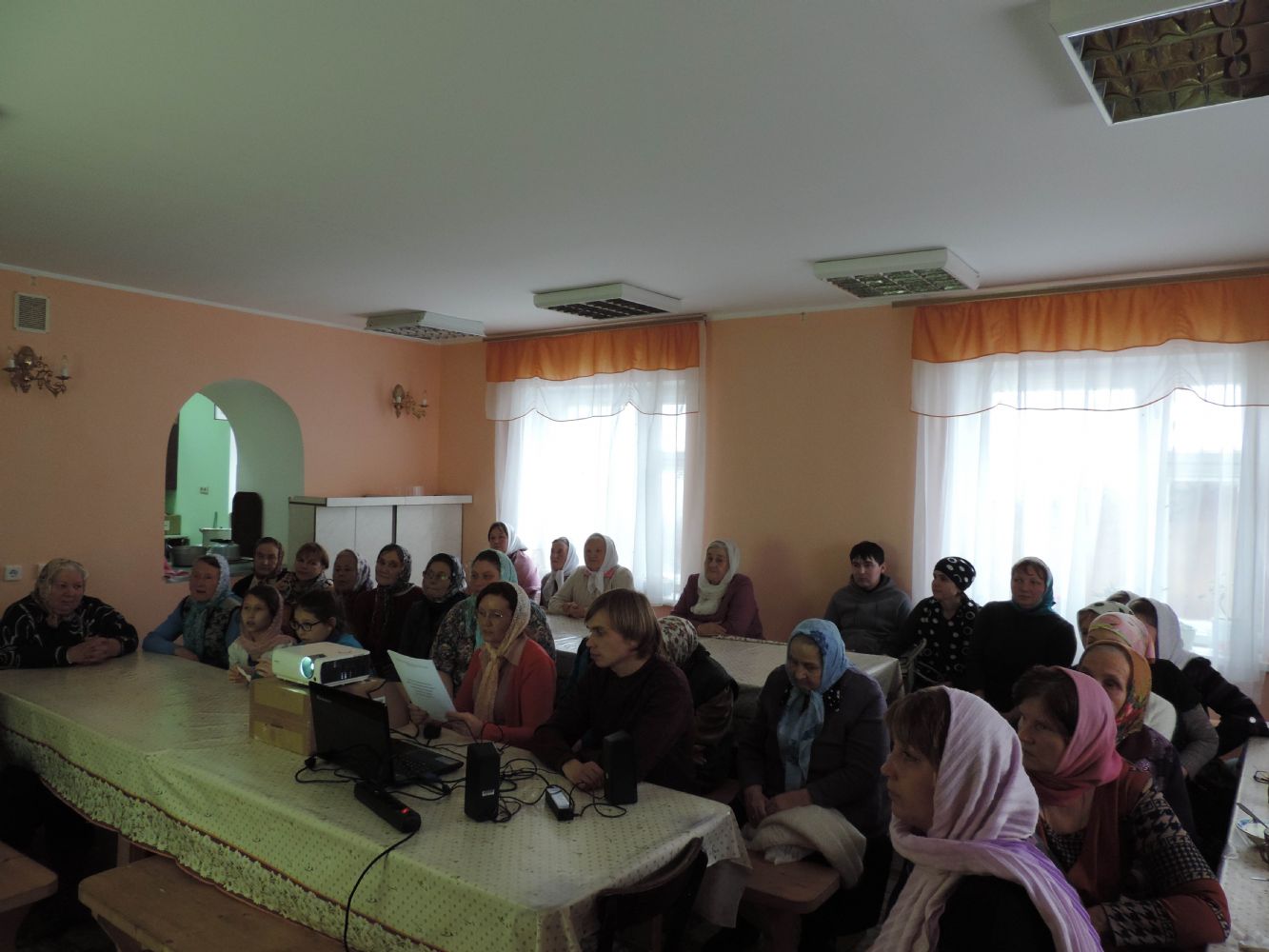 Затем своими воспоминаниями поделилась Евгения Ивановна Мусорова, с первых дней участвовавшая в восстановлении храма, который вернули верующим в 1995 году. Алтарь с главным престолом и колокольней были полностью разрушены. К сожалению, не восстановлены они и до сих пор, но по Божиему промыслу в храме снова звучит молитва, и вновь потянулись сюда верующие люди, моля Господа ниспослать здоровье своим близким, добро и свет всем людям.