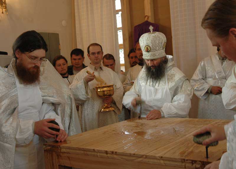 9 ноября прошлого года состоялось освящение основания строящегося храма. После торжественного молебна, который совершил архиепископ Йошкар-Олинский и Марийский Иоанн, в кирпичную кладку будущего храма была помещена капсула с закладной грамотой. В ней информация о возводящемся храме: в каком году от Рождества Христова заложен храм, кто принимал участие в его строительстве и подписи президента республики, архиепископа Иоанна и руководителя организации, возводящей храм, Геннадия Александрова.