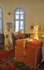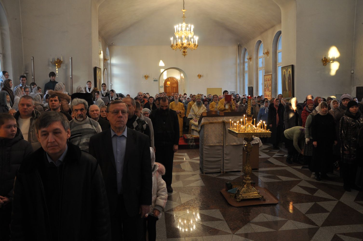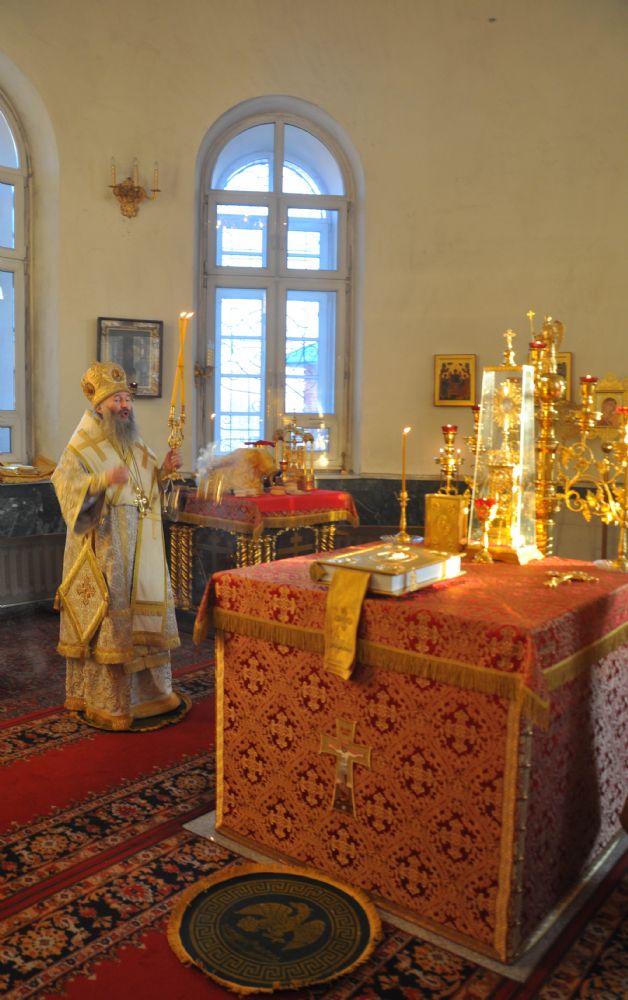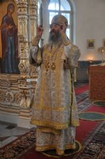 Архипастырю сослужили: секретарь епархии иеромонах Серафим (Пасанаев), настоятель храма протоиерей Сергий Поглазов и клирик храма иерей Никифор Захаров.