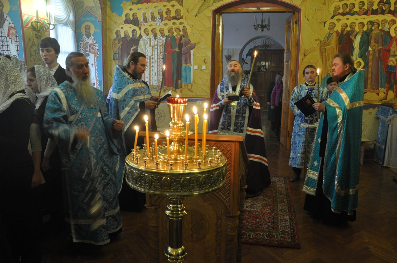 Днем Владыка совершил молебен с чтением акафиста иконе Божией Матери «Троеручица» в Епархиальном домовом храме. Богослужебные песнопения исполняли детско-юношеский хор «Благовест» под управлением регента Татьяны Черновой и хор Татианинского храма при ПГТУ под управлением регента Аллы Симаковой.