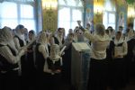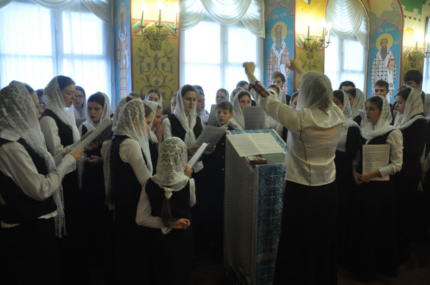 Богослужение украшали своими песнопениями три хора: хор Воскресенского собора под управлением регента Елены Поглазовой, детско-юношеский хор «Благовест» под управлением регента Татьяны Черновой. А третьими исполнителями богослужебных песен стали учащиеся воскресной школы в возрасте 6-8 лет, которые пока еще готовятся стать участниками хора «Благовест».