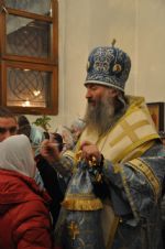 Владыке сослужили: секретарь епархии иеромонах Серафим (Пасанаев), настоятель храма митрофорный протоиерей Сергий Филонов и клирики храма.